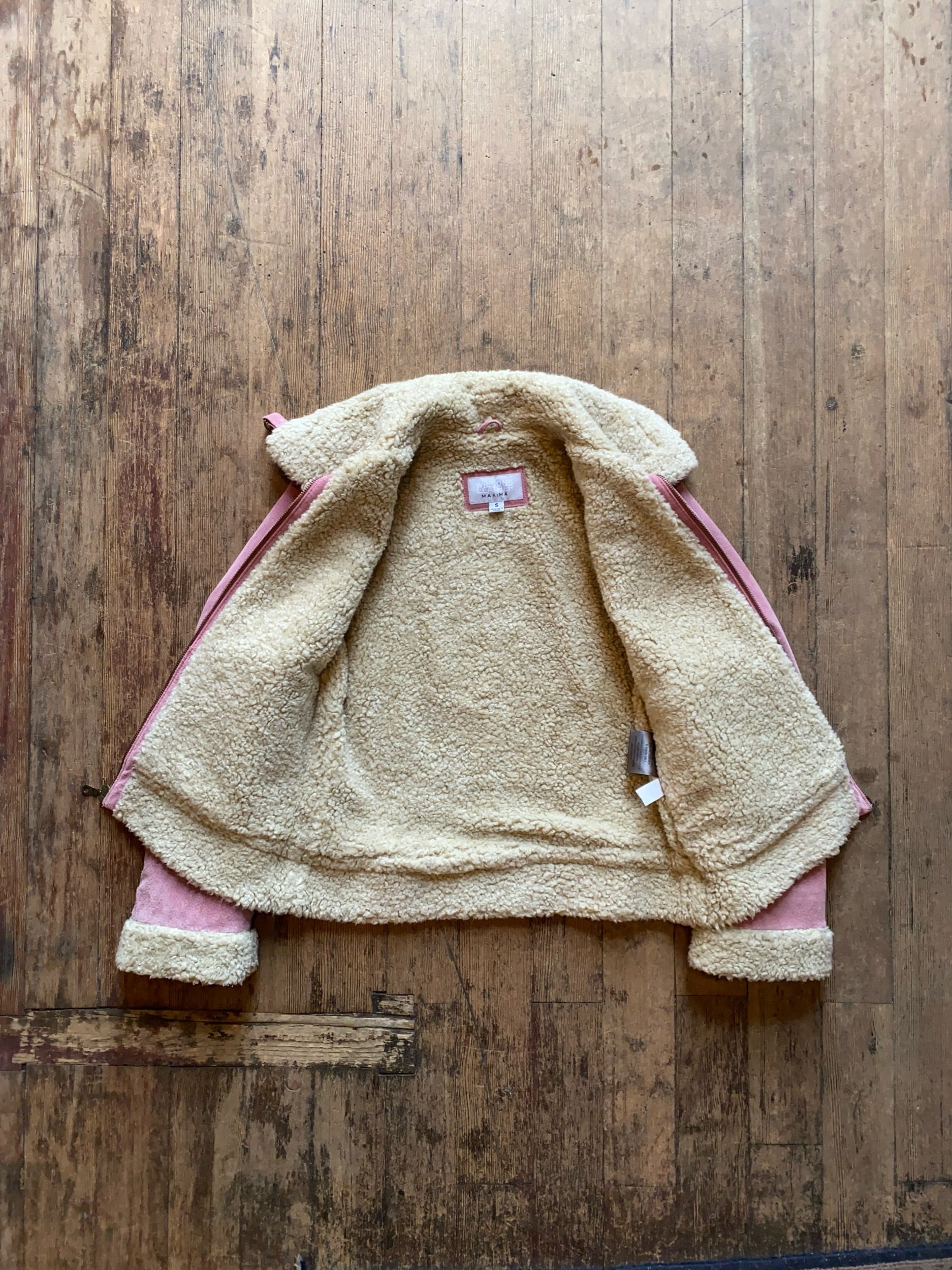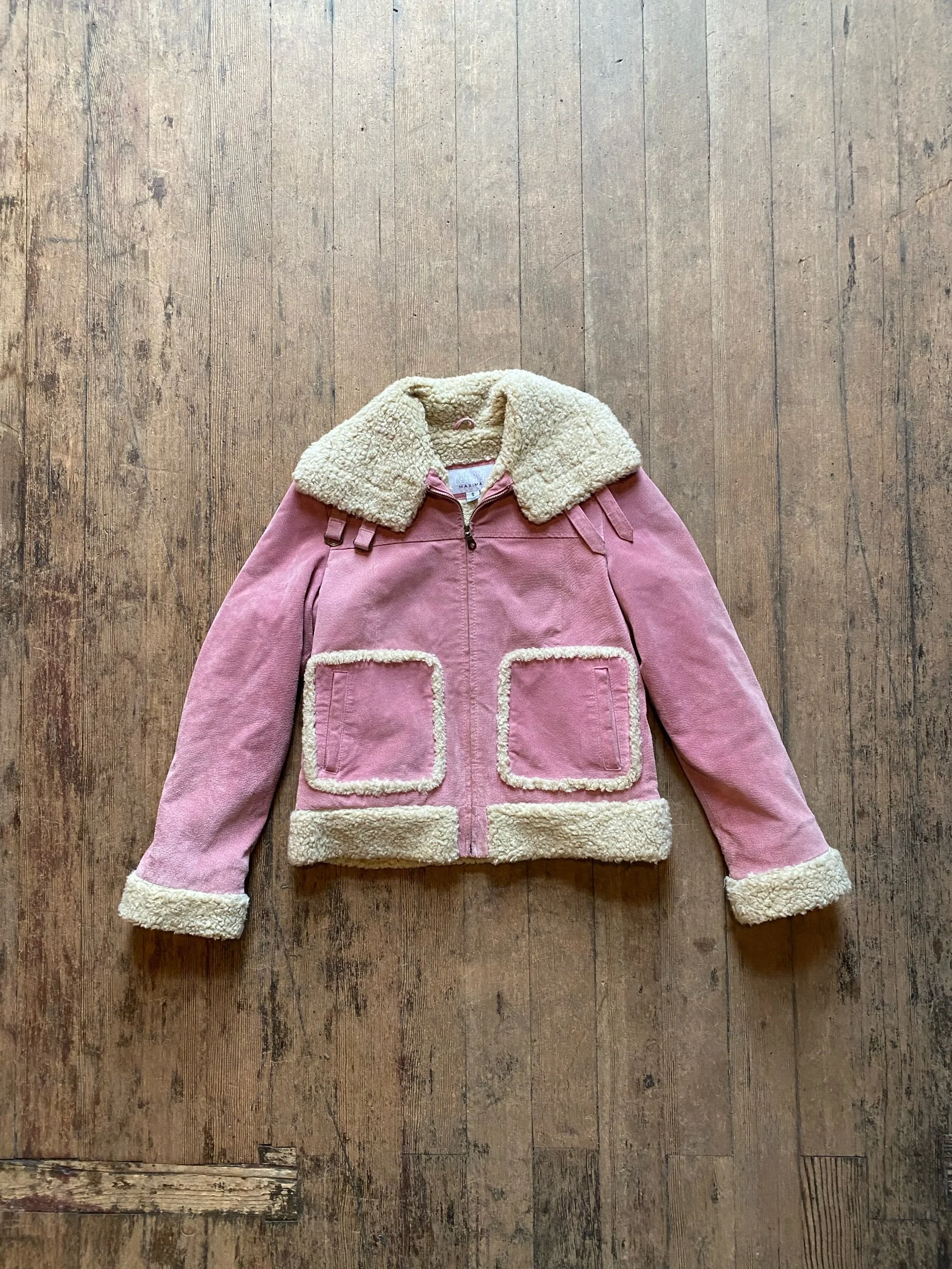 Y2K Pink Leather Shearling Lane B3 Bomber Cropped Jacket