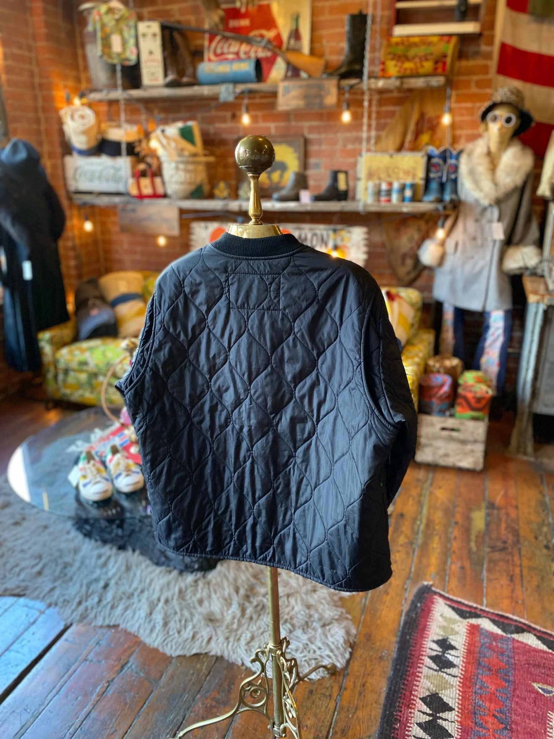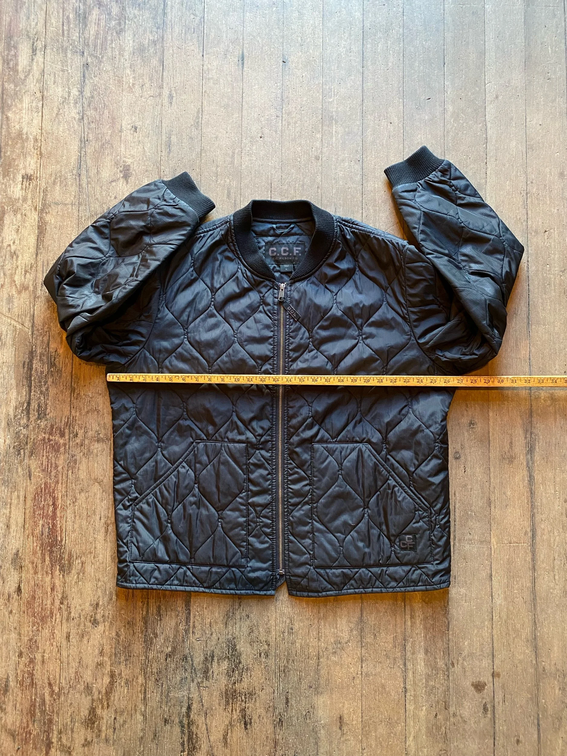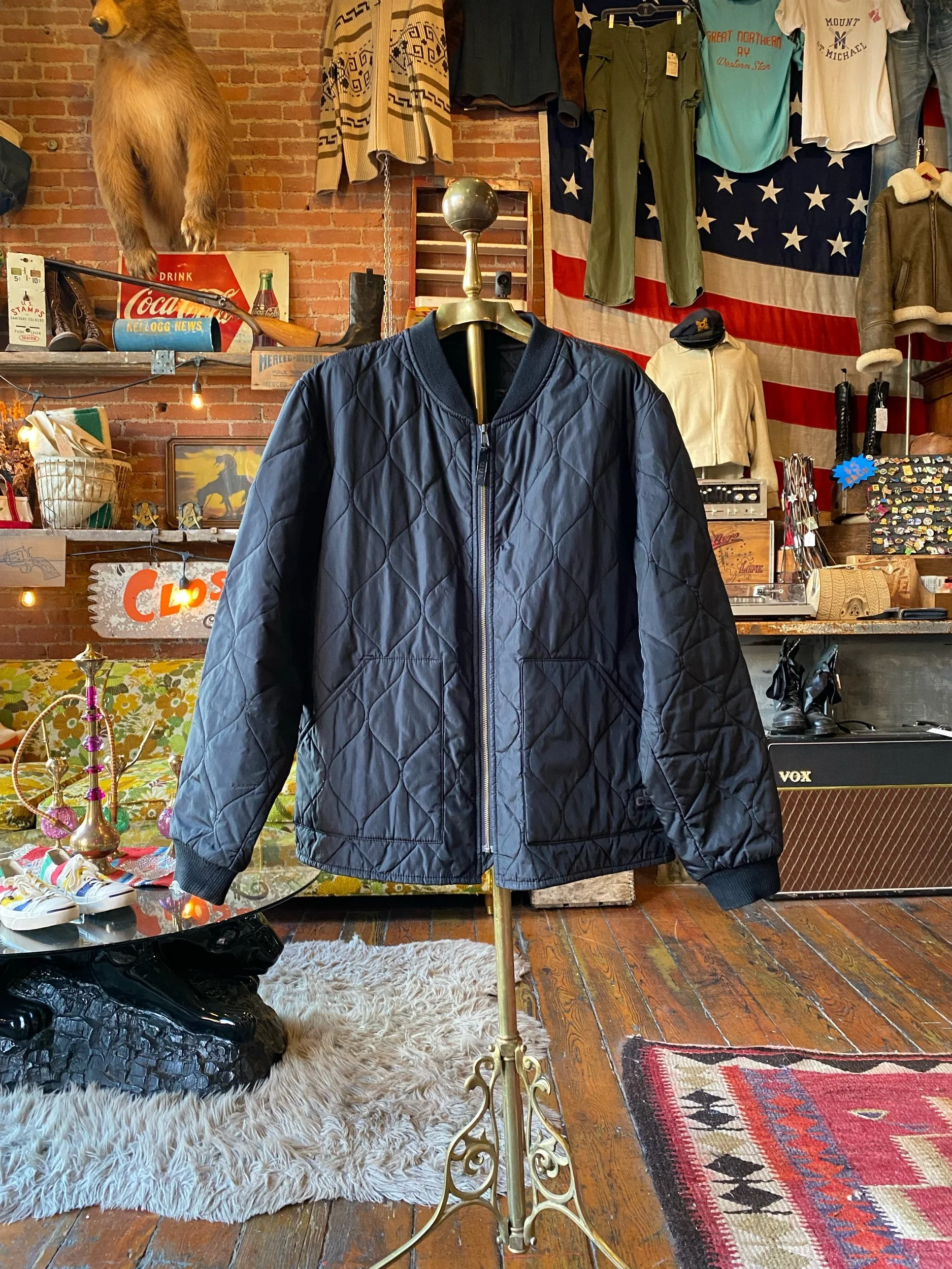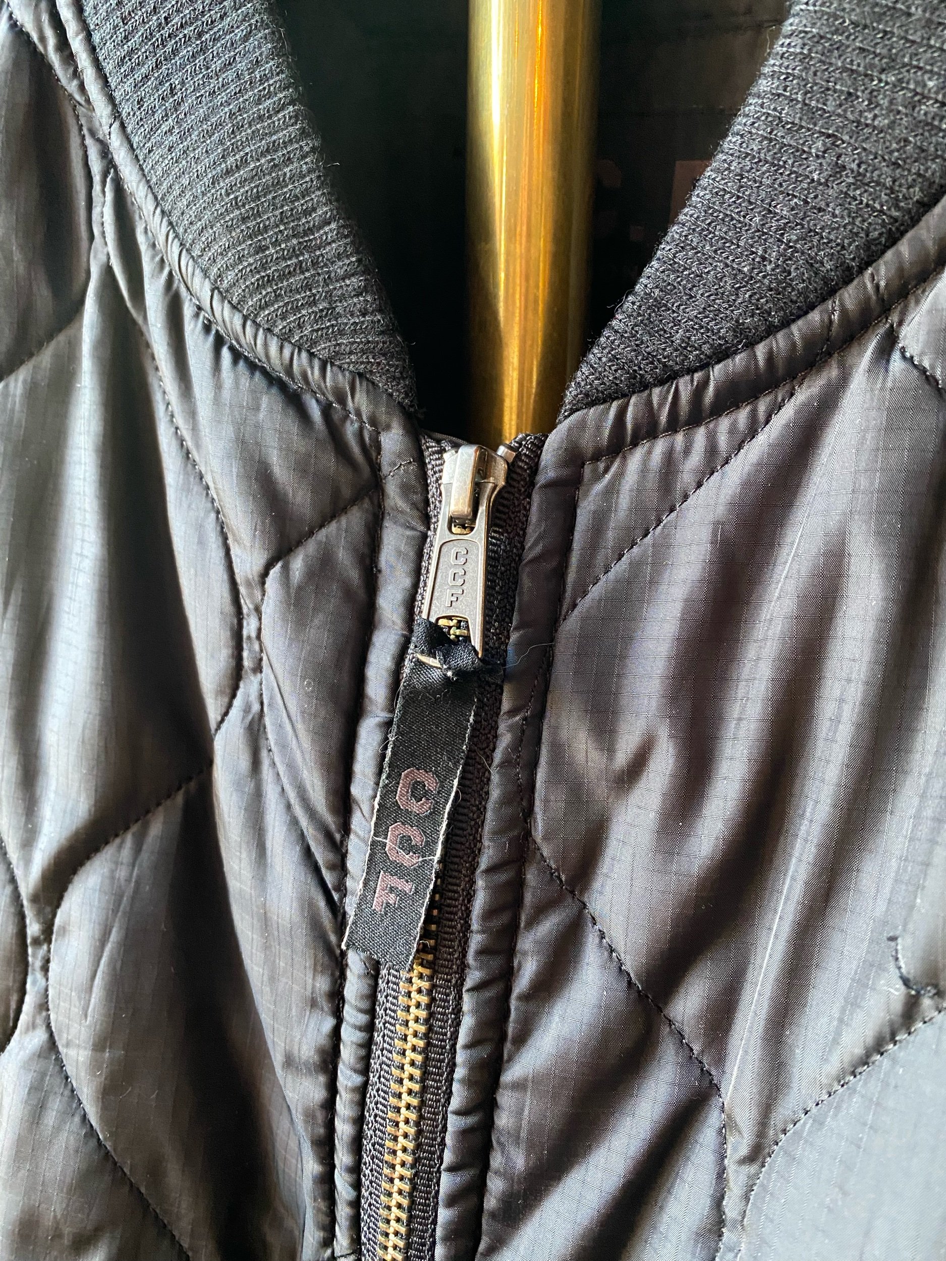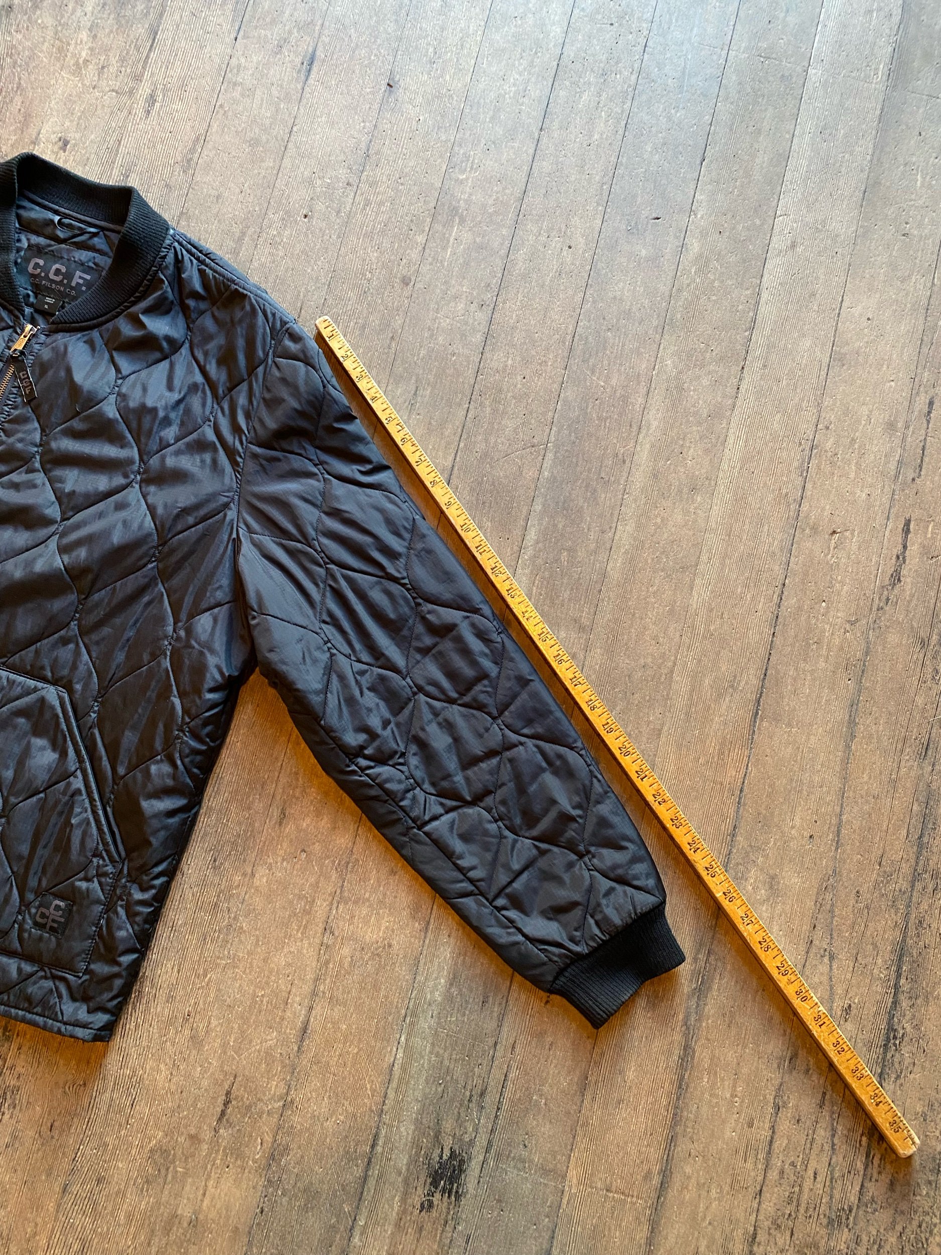 Filson quilted zip up jacket black cwu military style