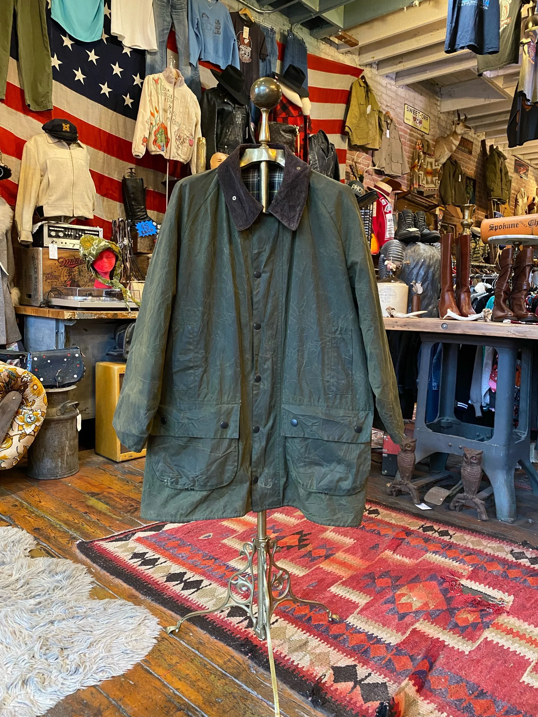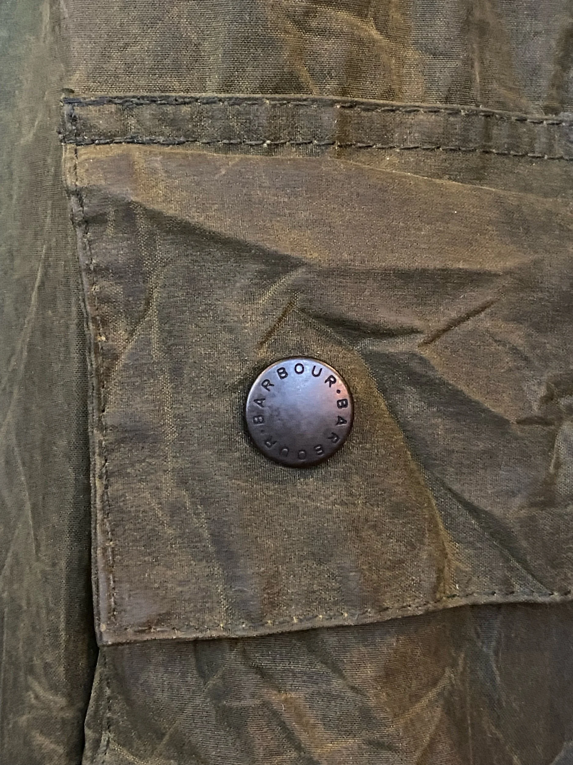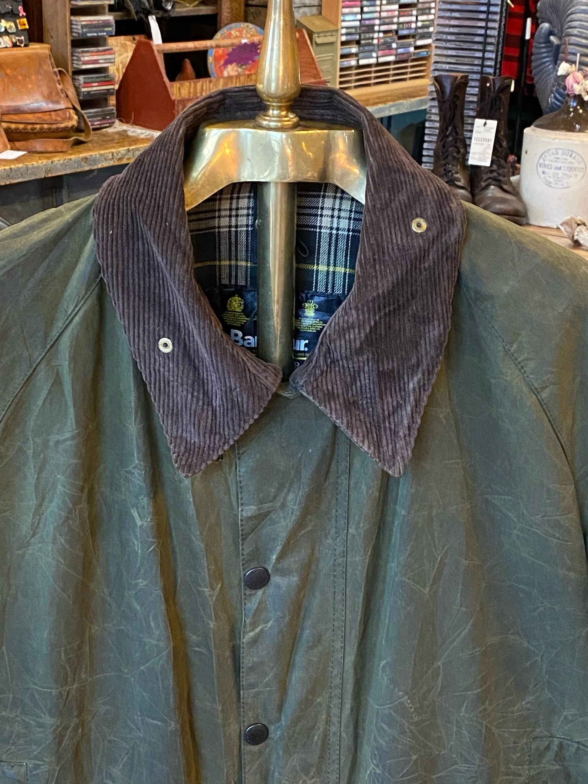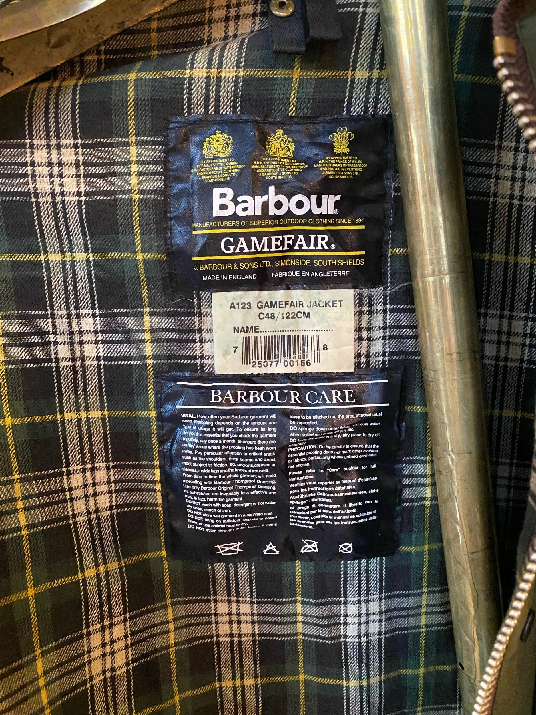 Vintage Barbour Gamefair Green Tin Oil Cloth Jacket