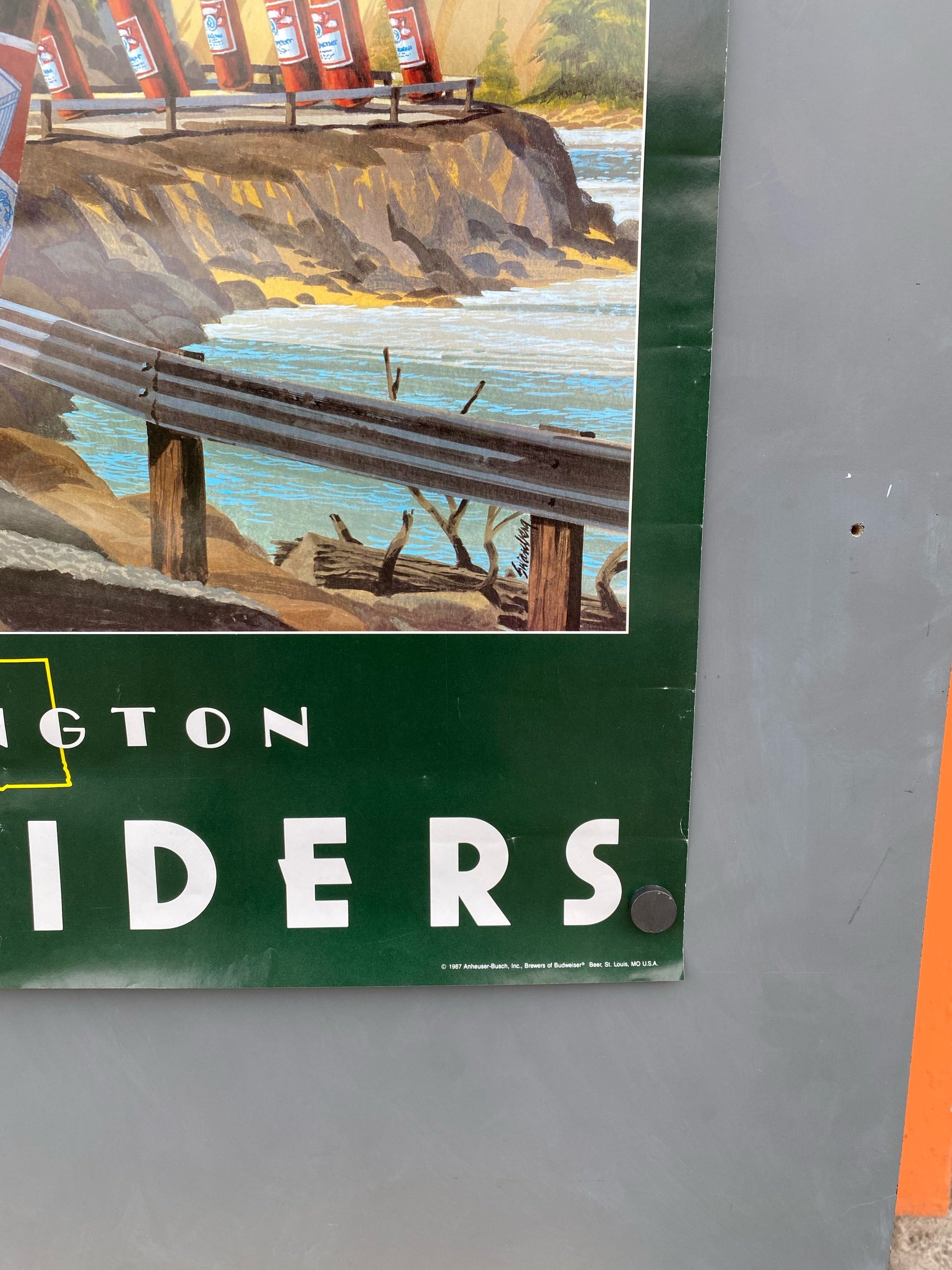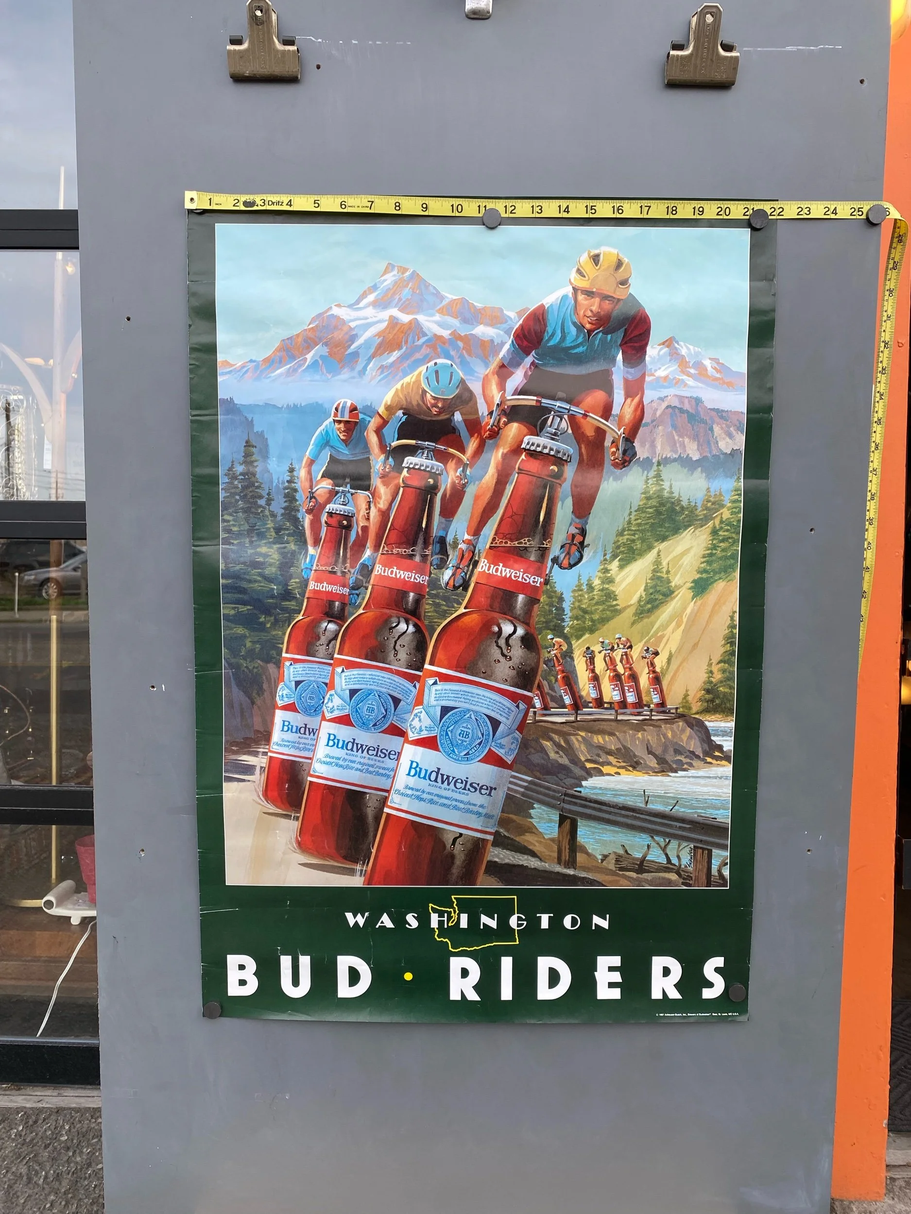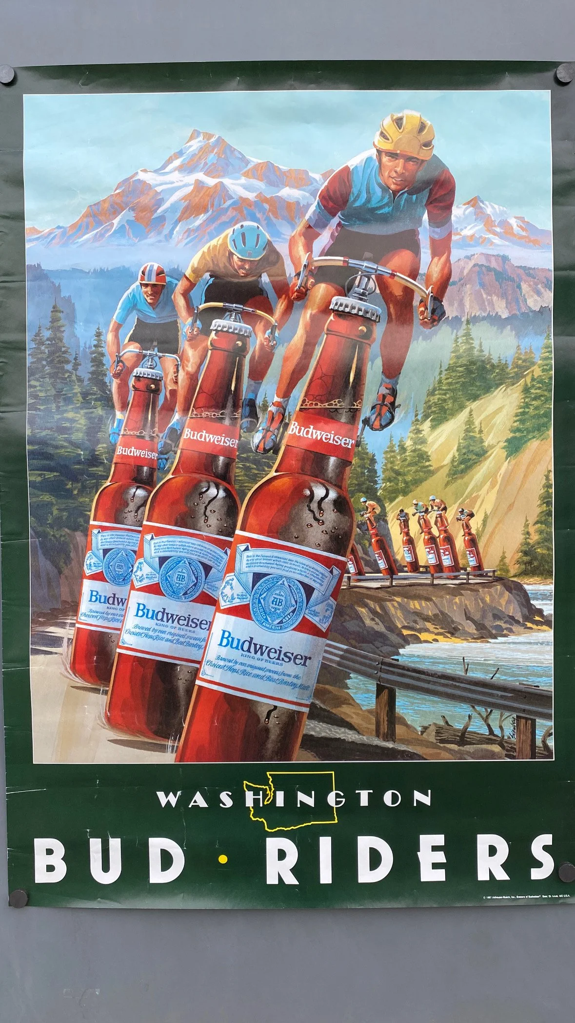 Vintage Budweiser Beer Poster Washington Bud Riders Bicycle 1987 Advertising RARE