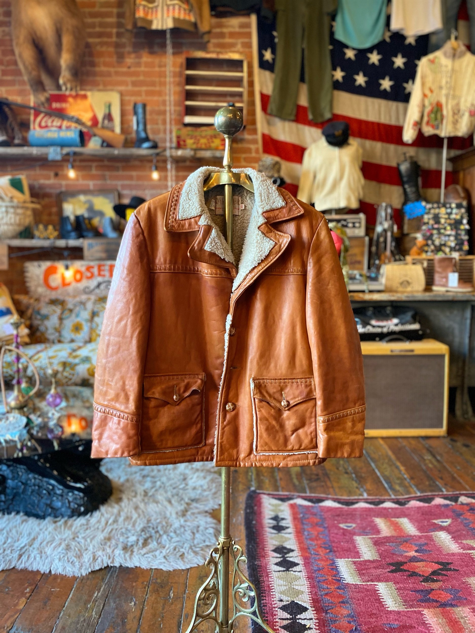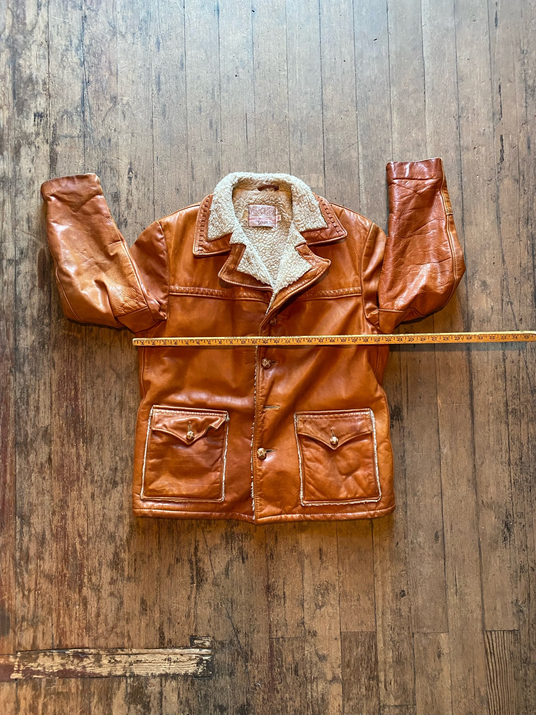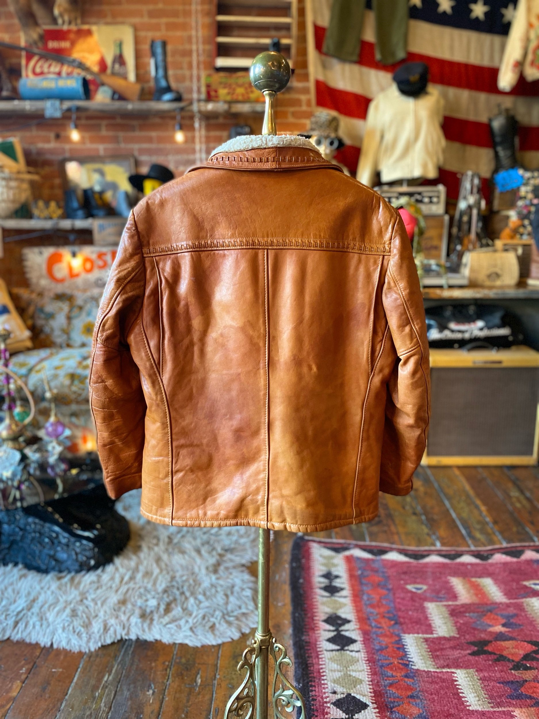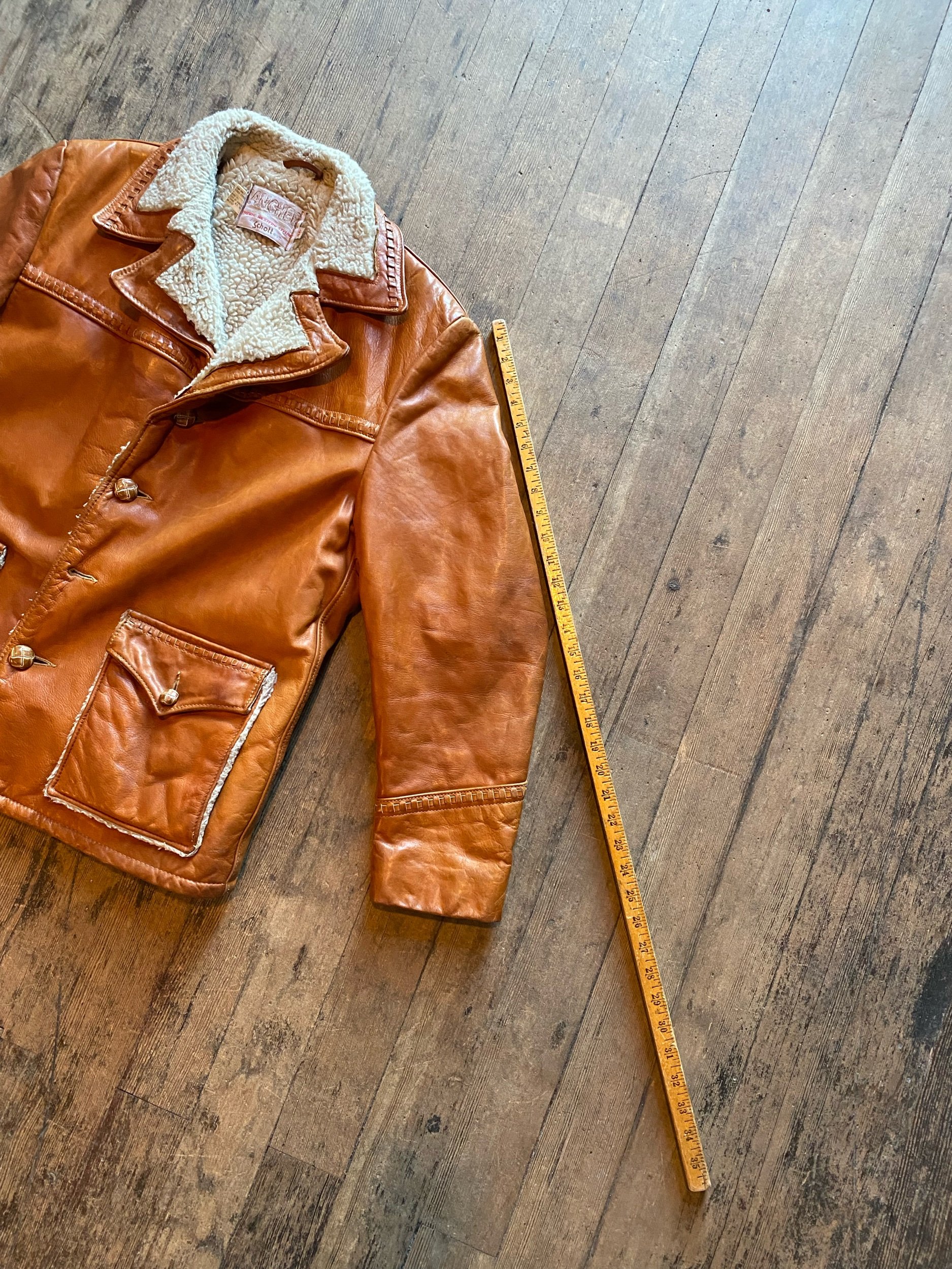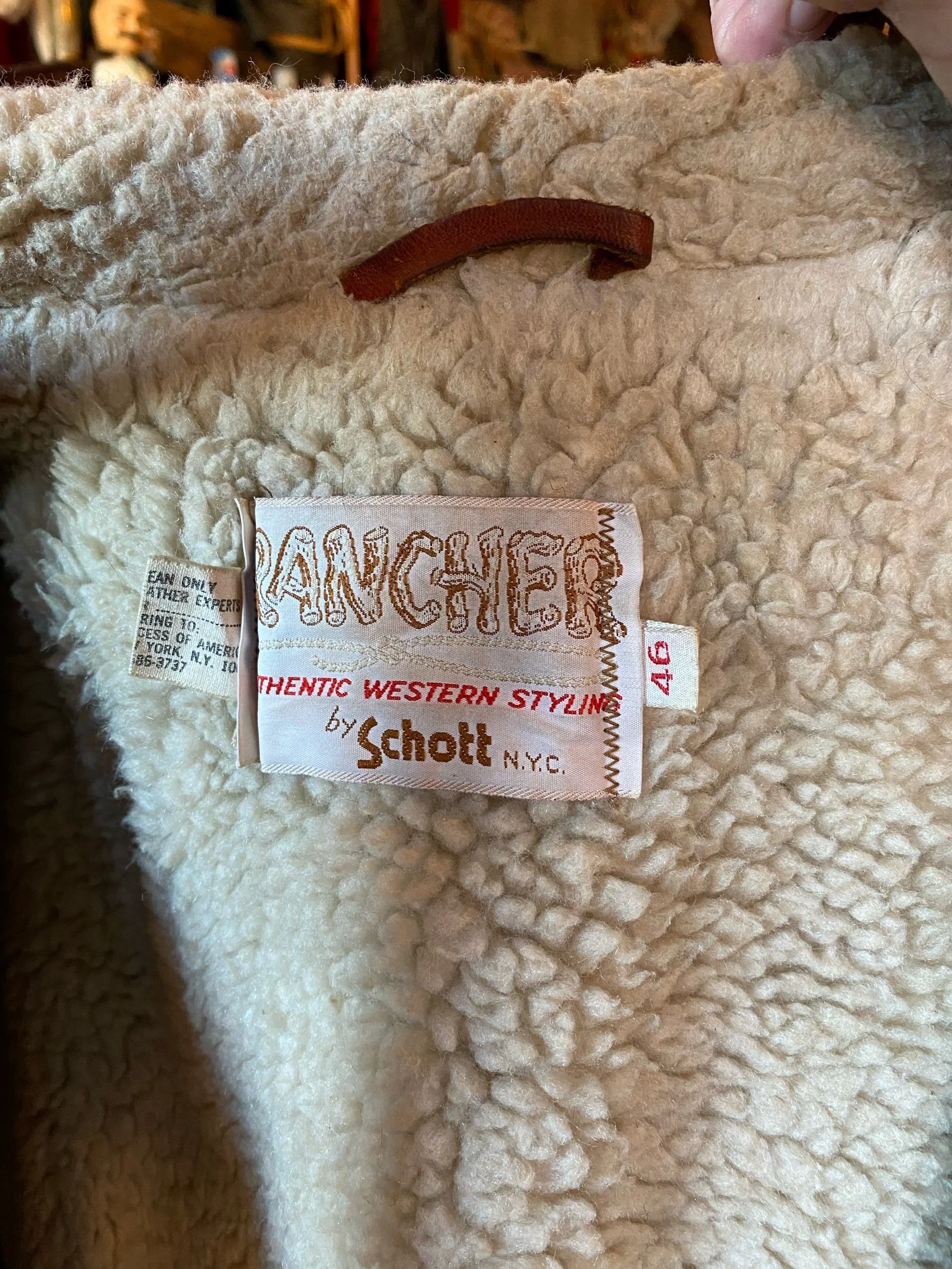 70s Vintage Schott Rancher Leather Western Shearling Sherpa Lined Coat