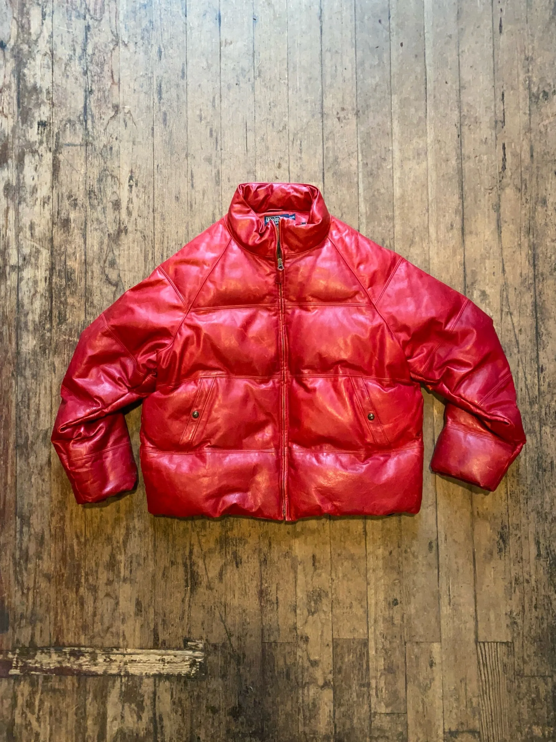 Vintage 90s Ralph Lauren Polo Leather Goose Down Puffer Jacket