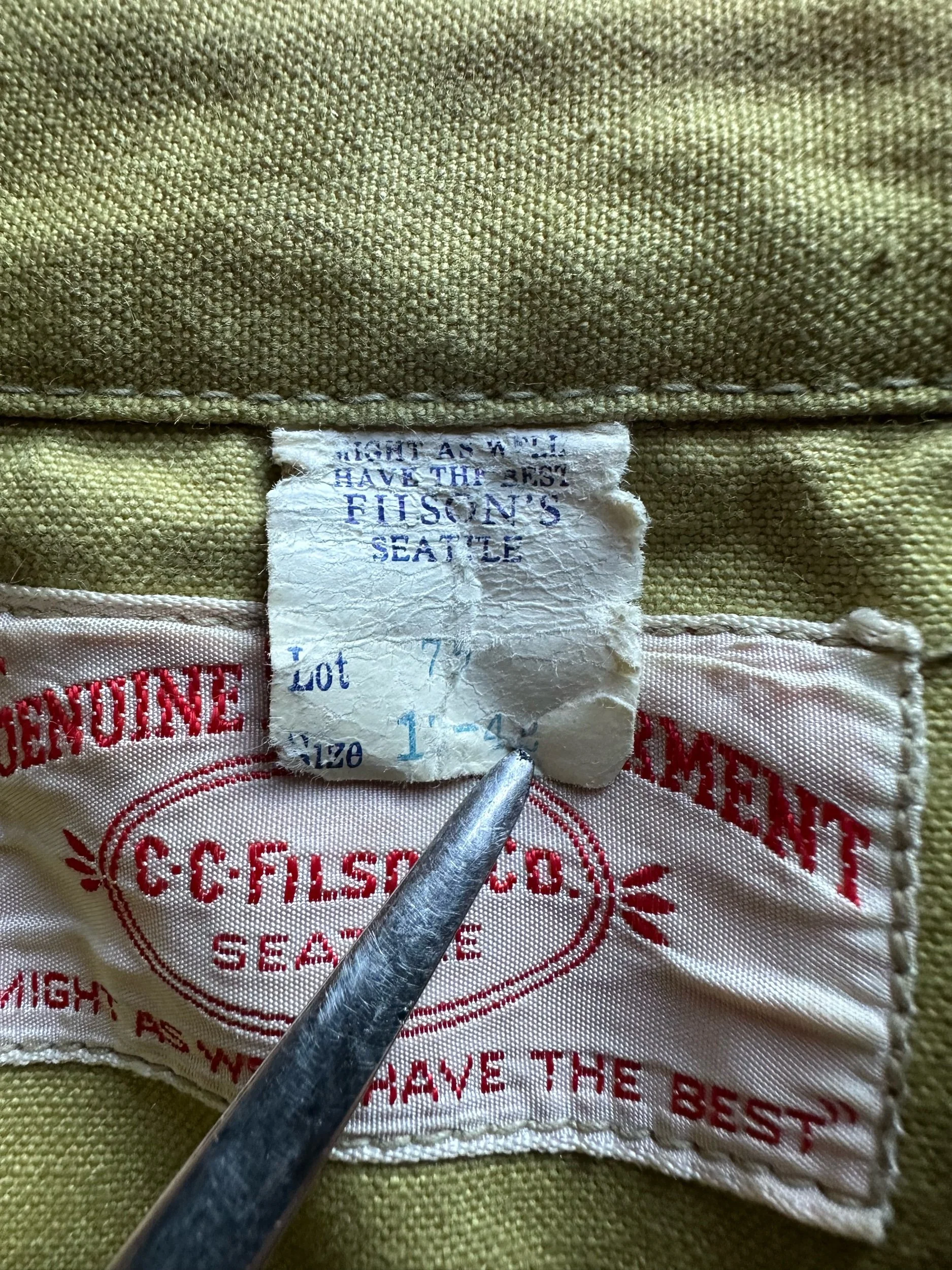 Shop All › 1930s FILSON’s Tin Cloth Jacket filson Image 1 of 14 Image 2 of 14 Image 3 of 14 Image 4 of 14 Image 5 of 14 Image 6 of 14 Image 7 of 14 Image 8 of 14 Image 9 of 14 Image 10 of 14 Image 11 of 14 Image 12 of 14 Image 13 of 14 Image 14 of 14 1930s FILSON’s Tin Cloth Jacket filson $795.00 1930s FILSON’s Tin Cloth Jacket FilsonIncredible piece of history. Measurements in photos Get notified by email when this product is in stock. Quantity: Purchase Added! 1930s FILSON’s Tin Cloth Jacket FilsonIncredible piece of history. Measurements in photos