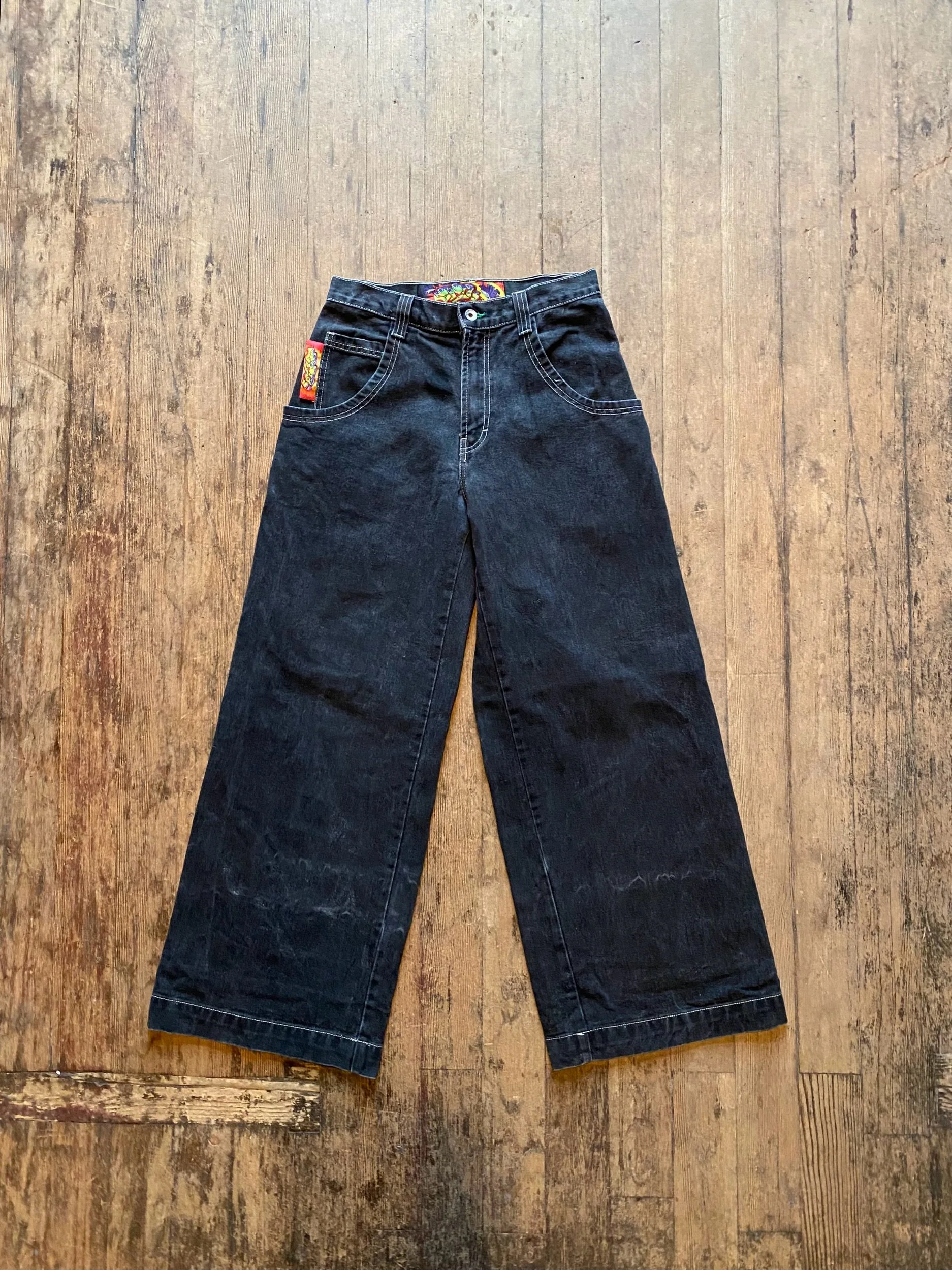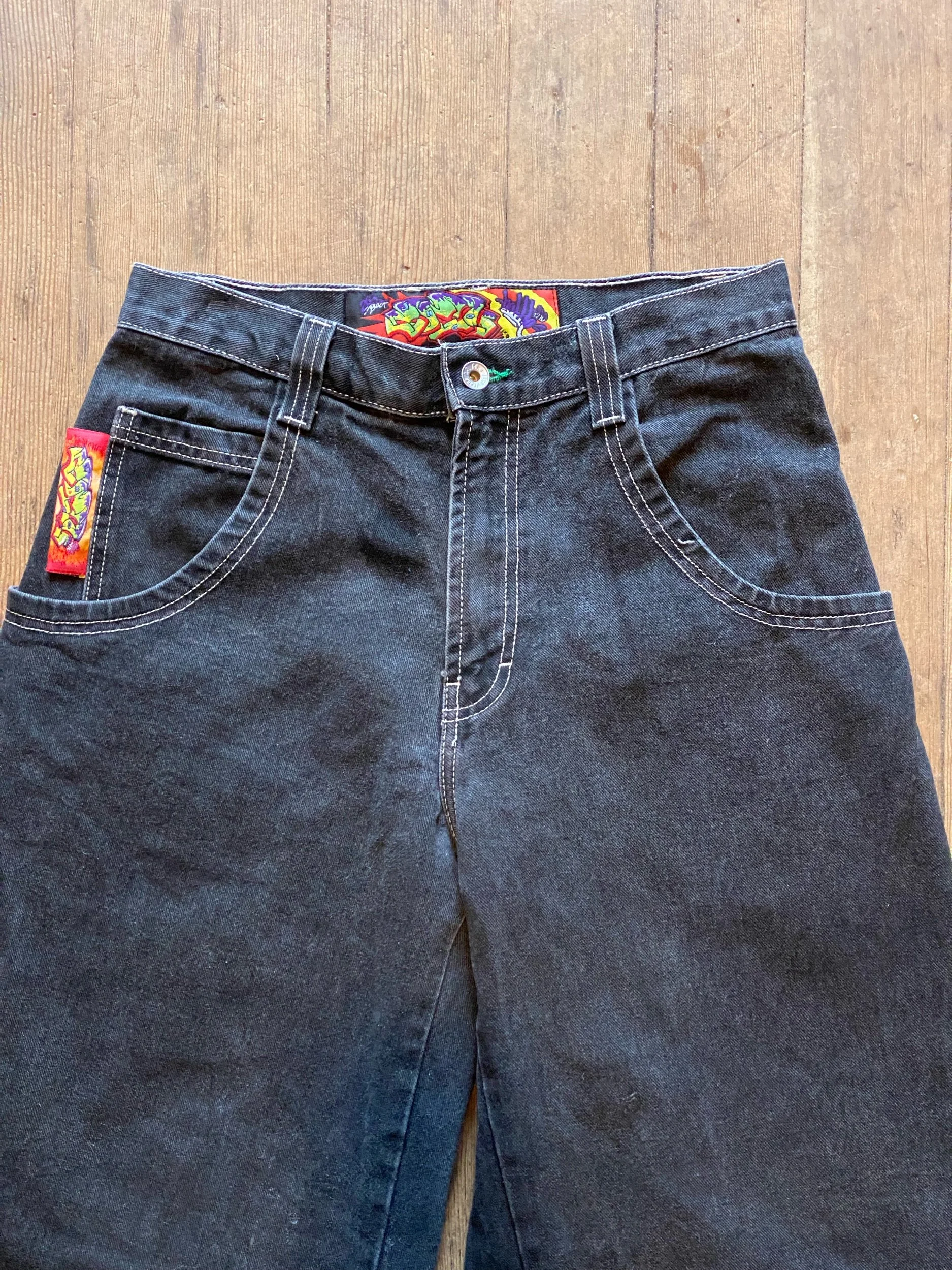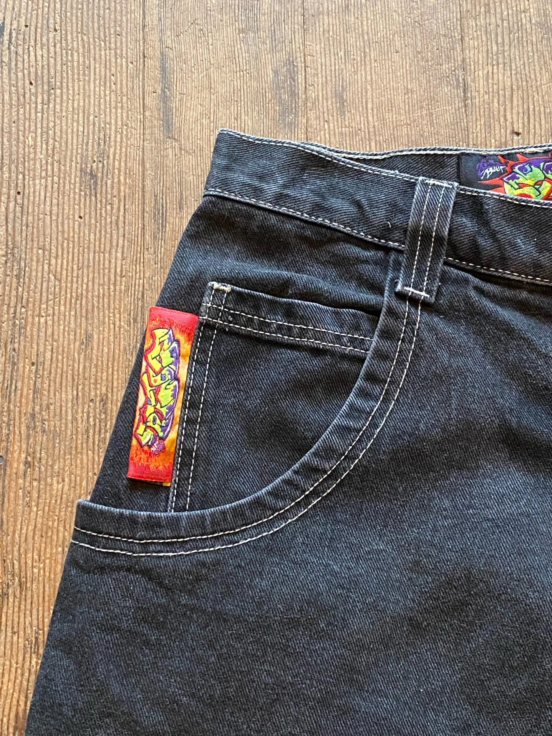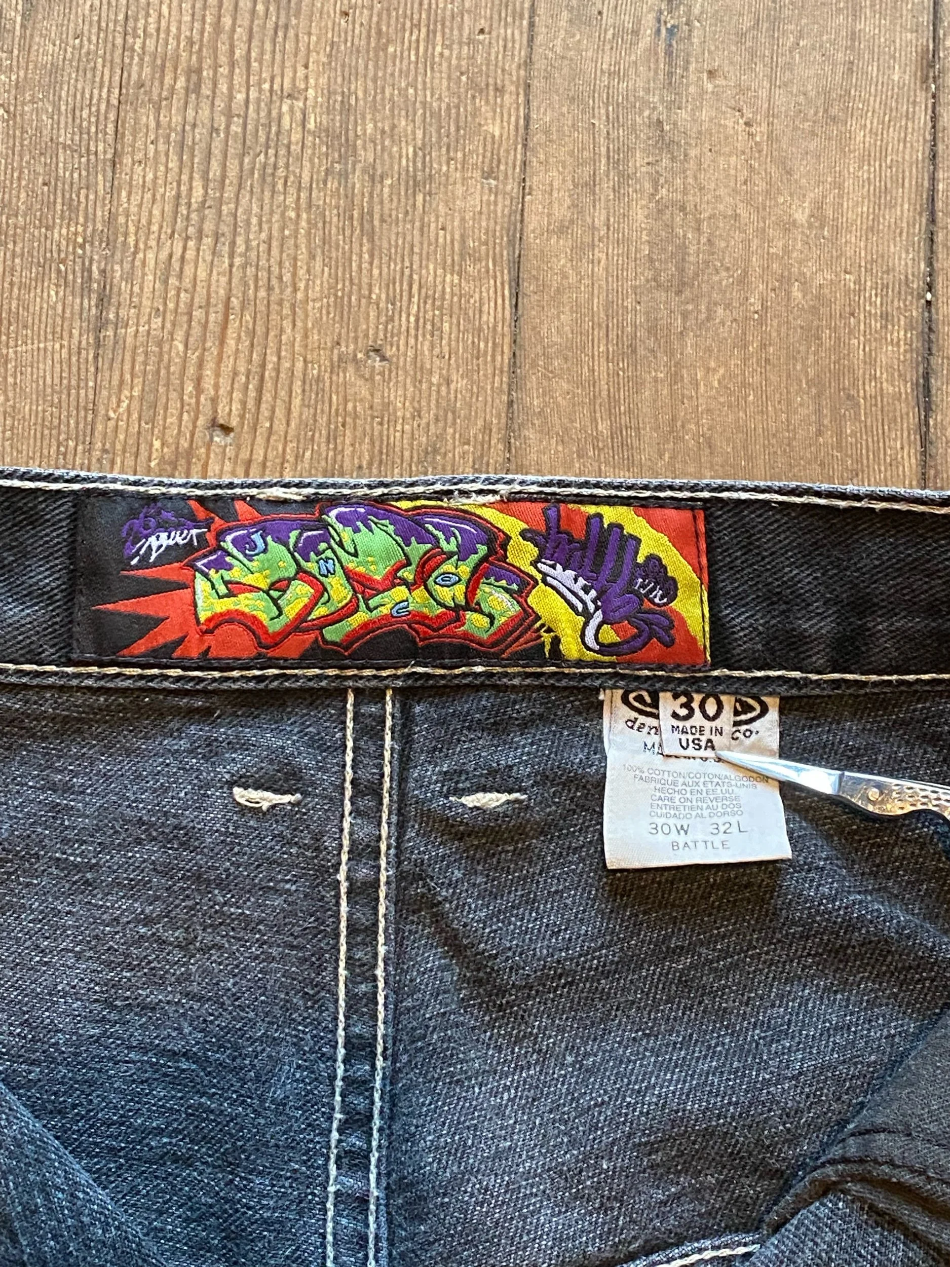 VTG JNCO Battle Black Jeans wide leg skater style 90s USA RARE 29x31 Graffiti