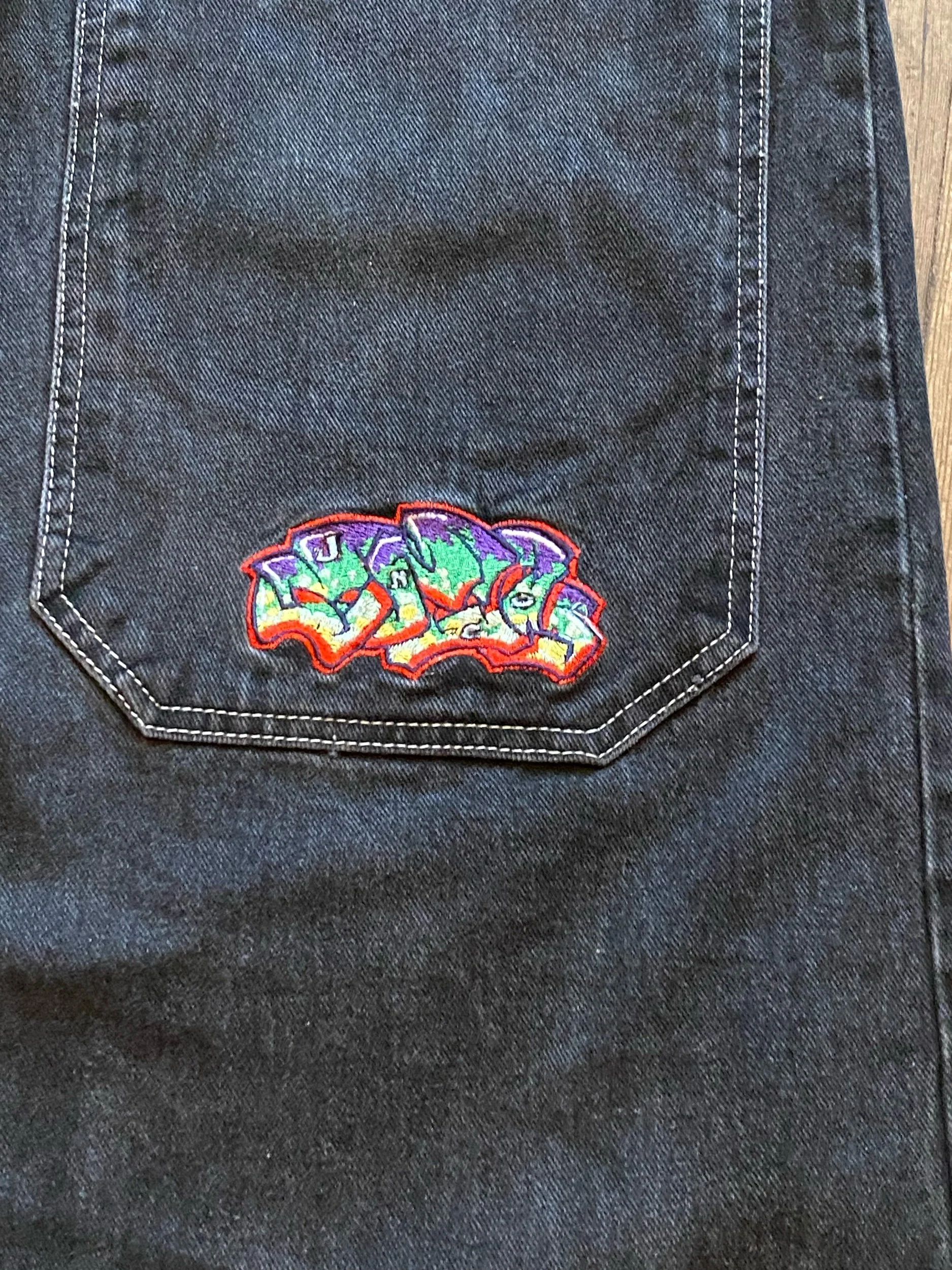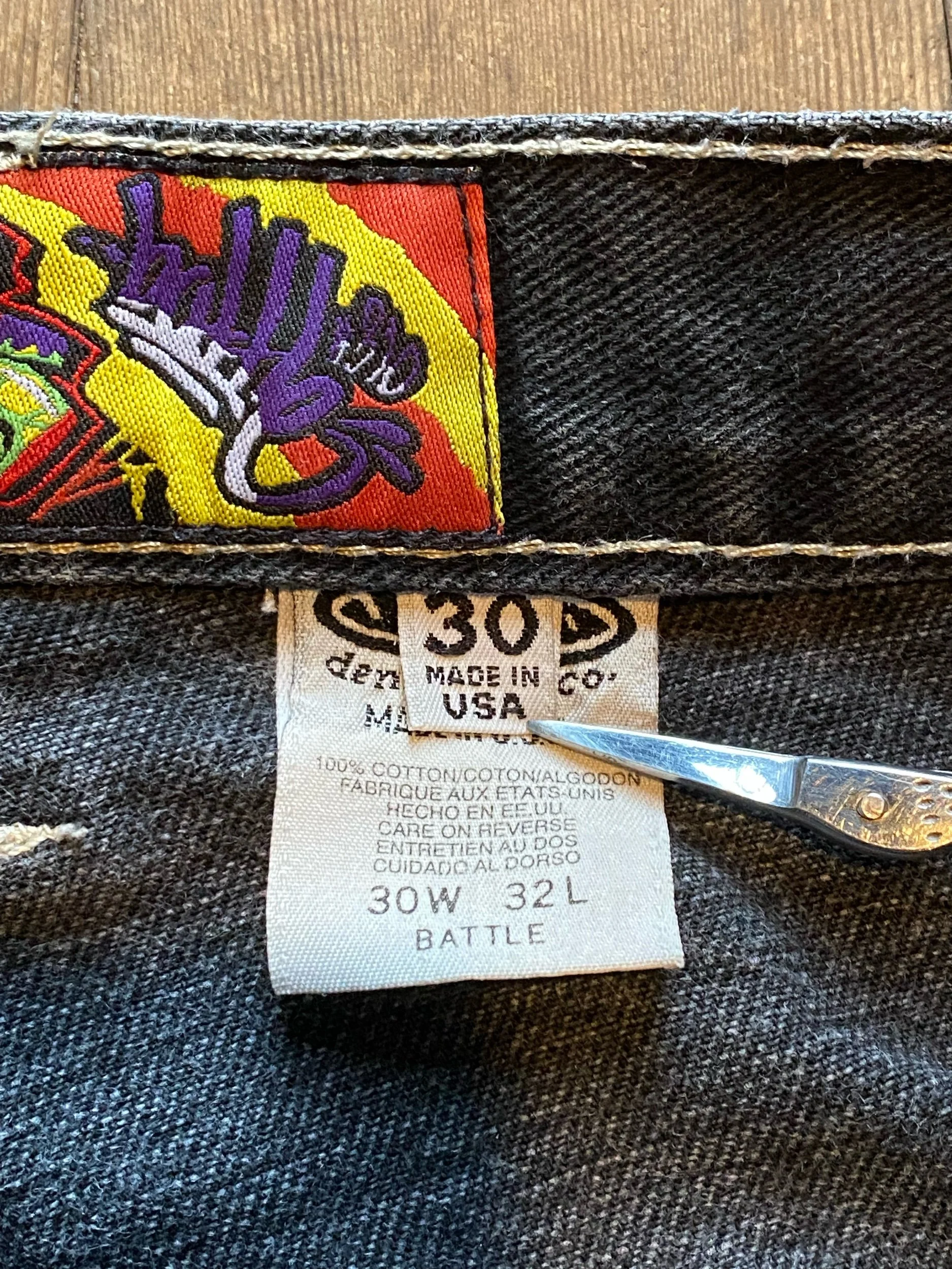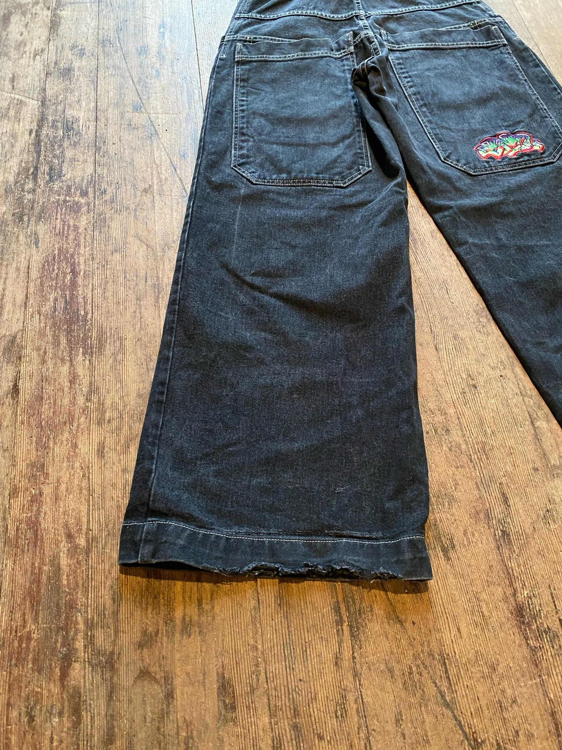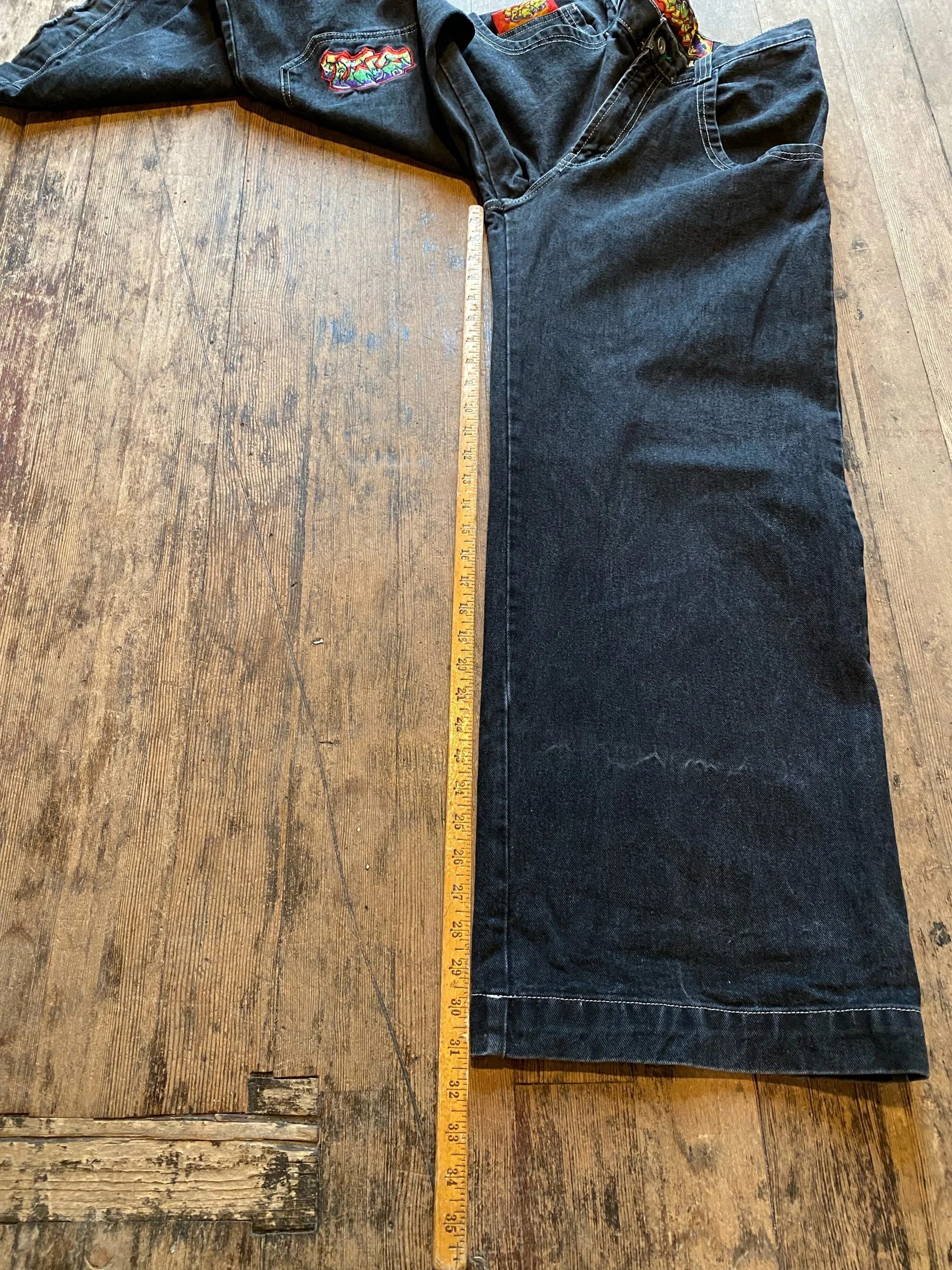 VTG JNCO Battle Black Jeans wide leg skater style 90s USA RARE 29x31 Graffiti
