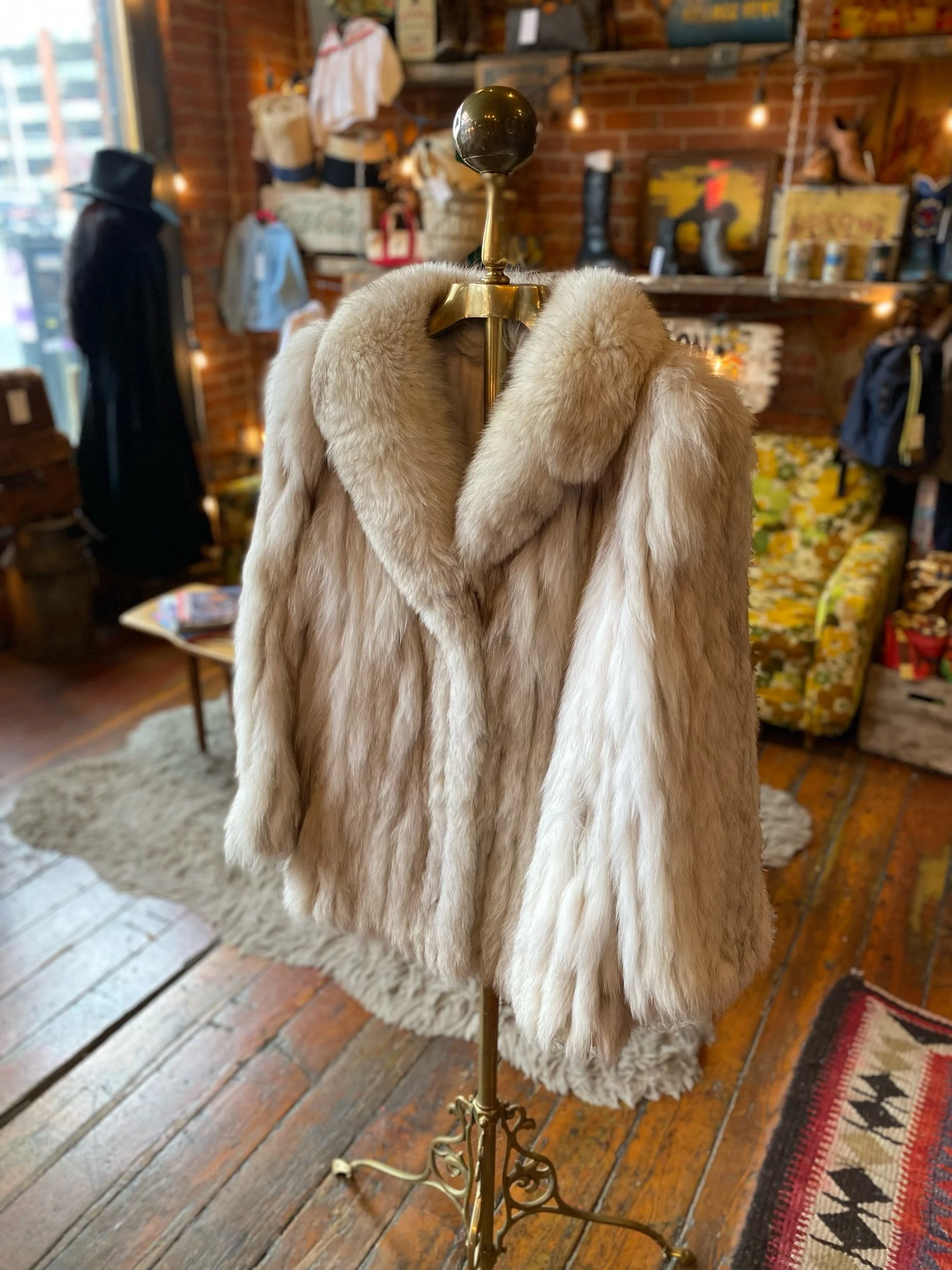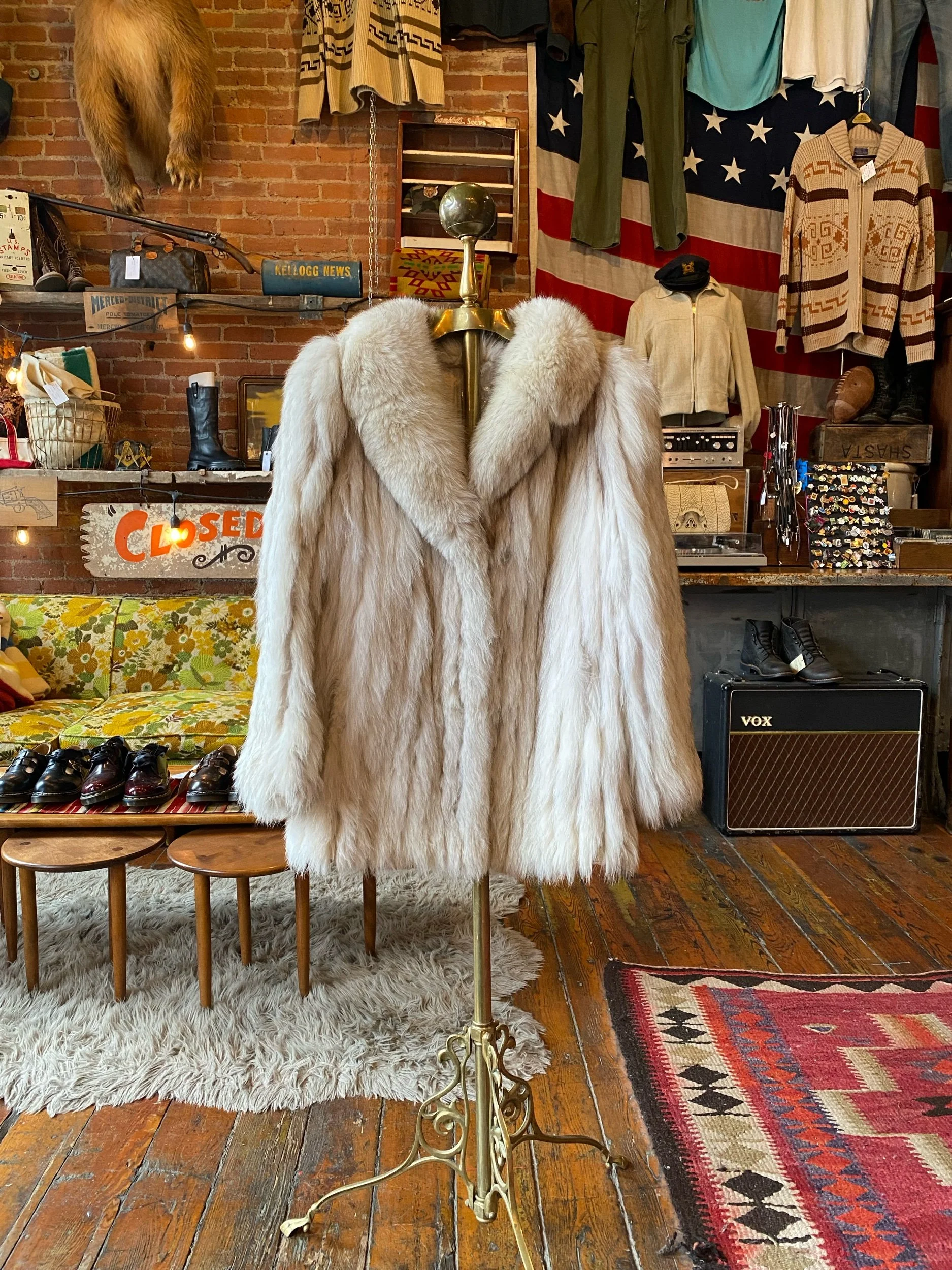 Vintage Crystal Fox fur coat bog shawl collar NICE