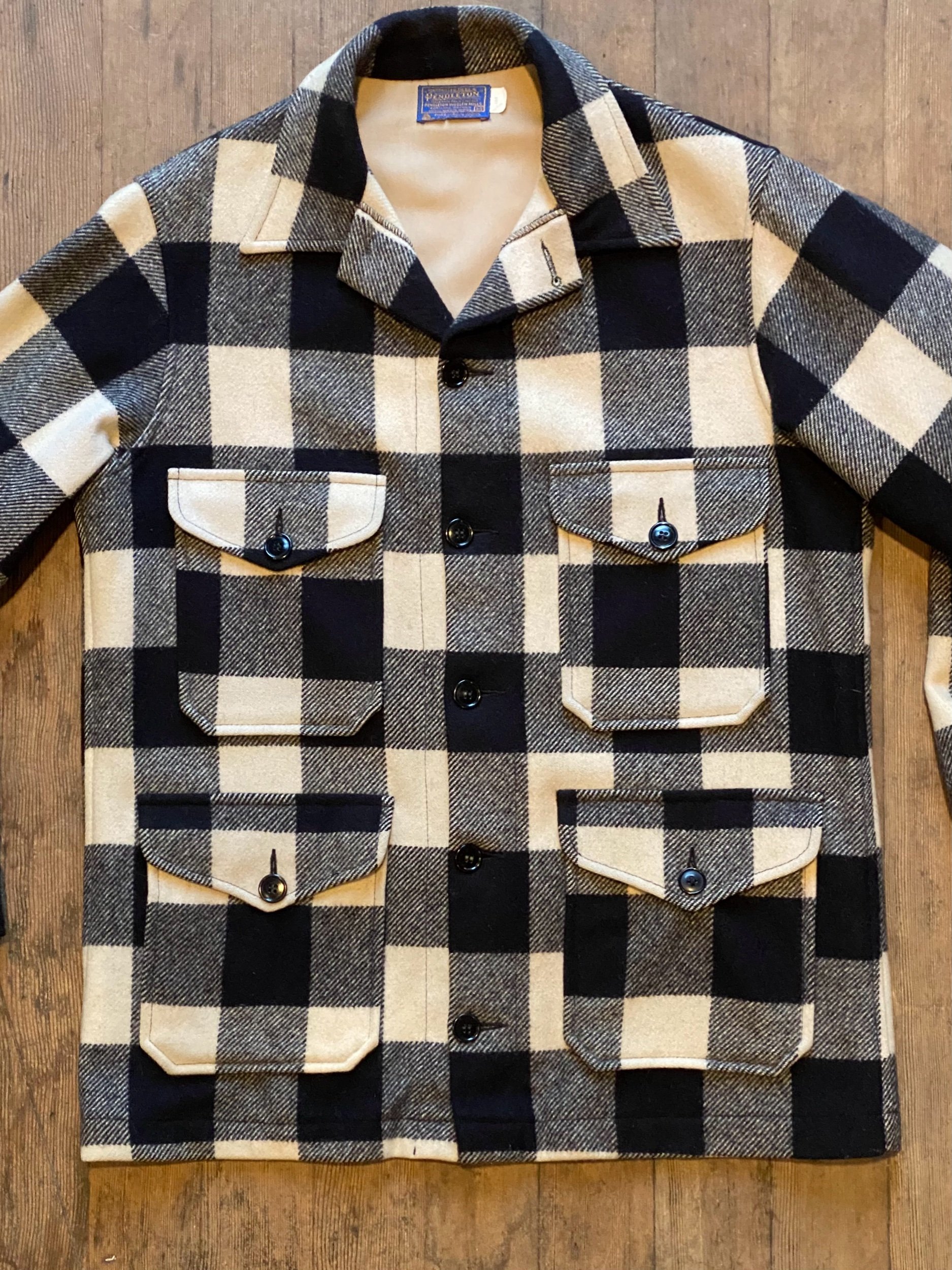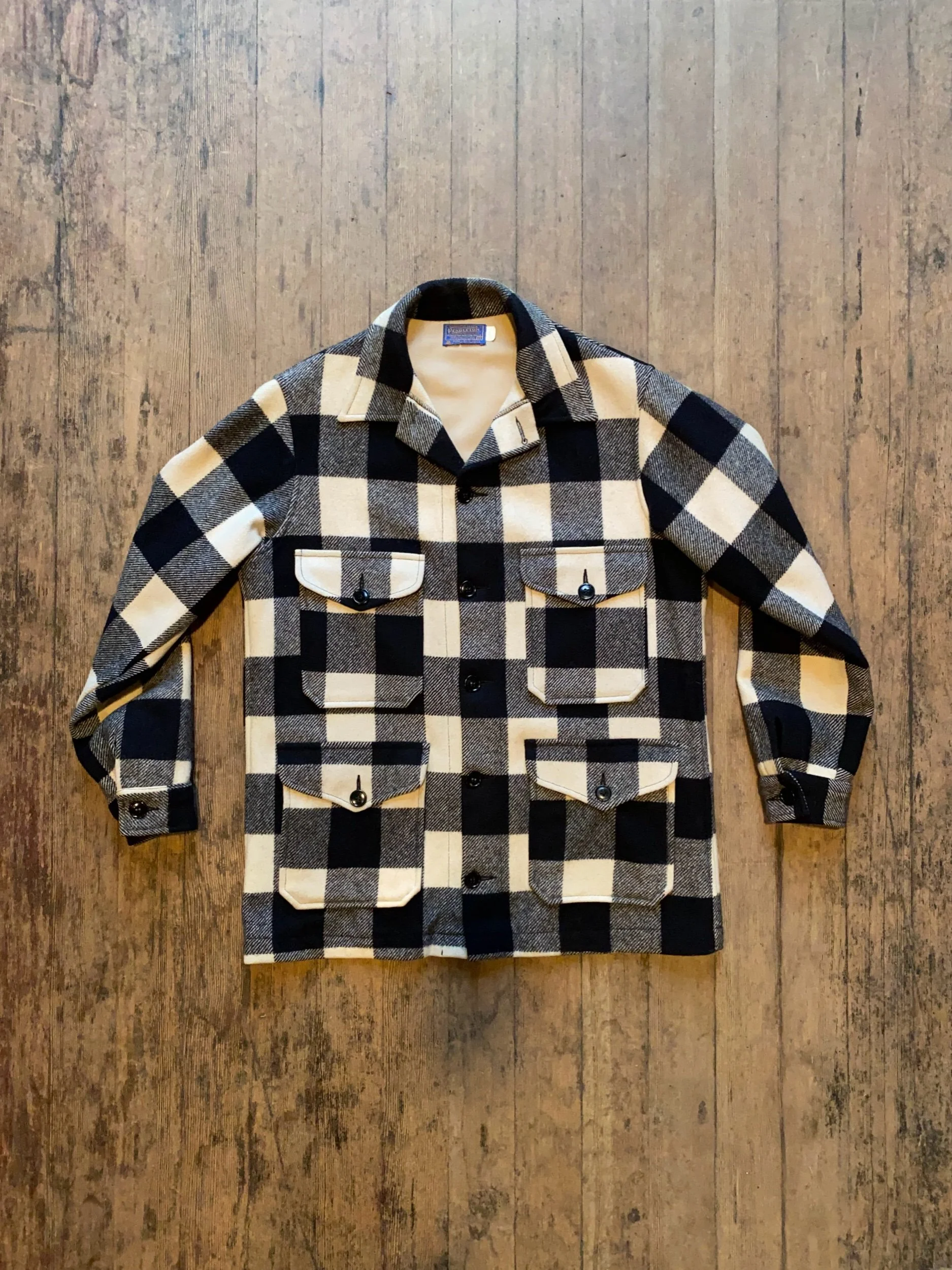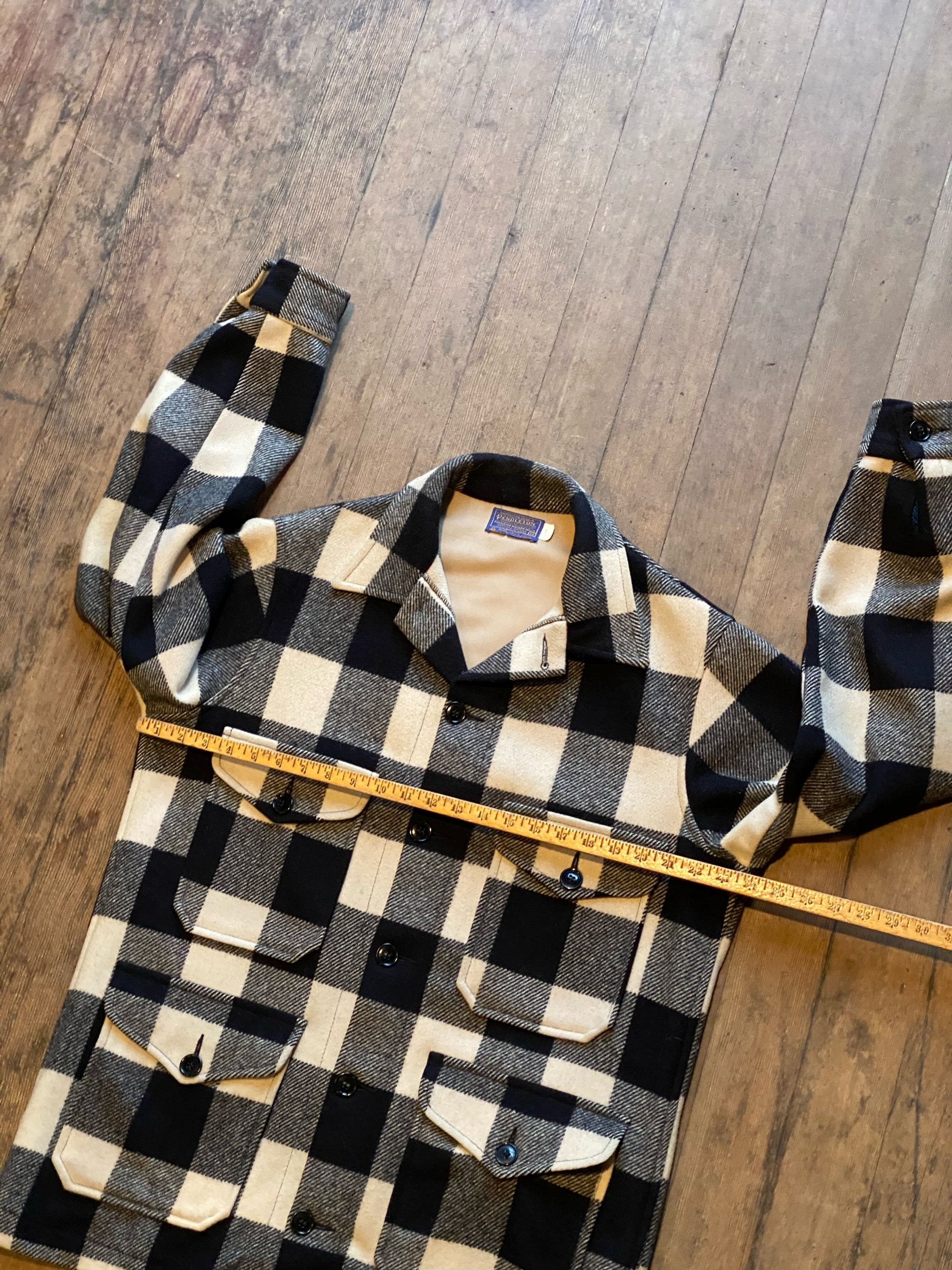 Vintage Pendleton Black White Plaid Heavy Cruiser Mackinaw Jacket