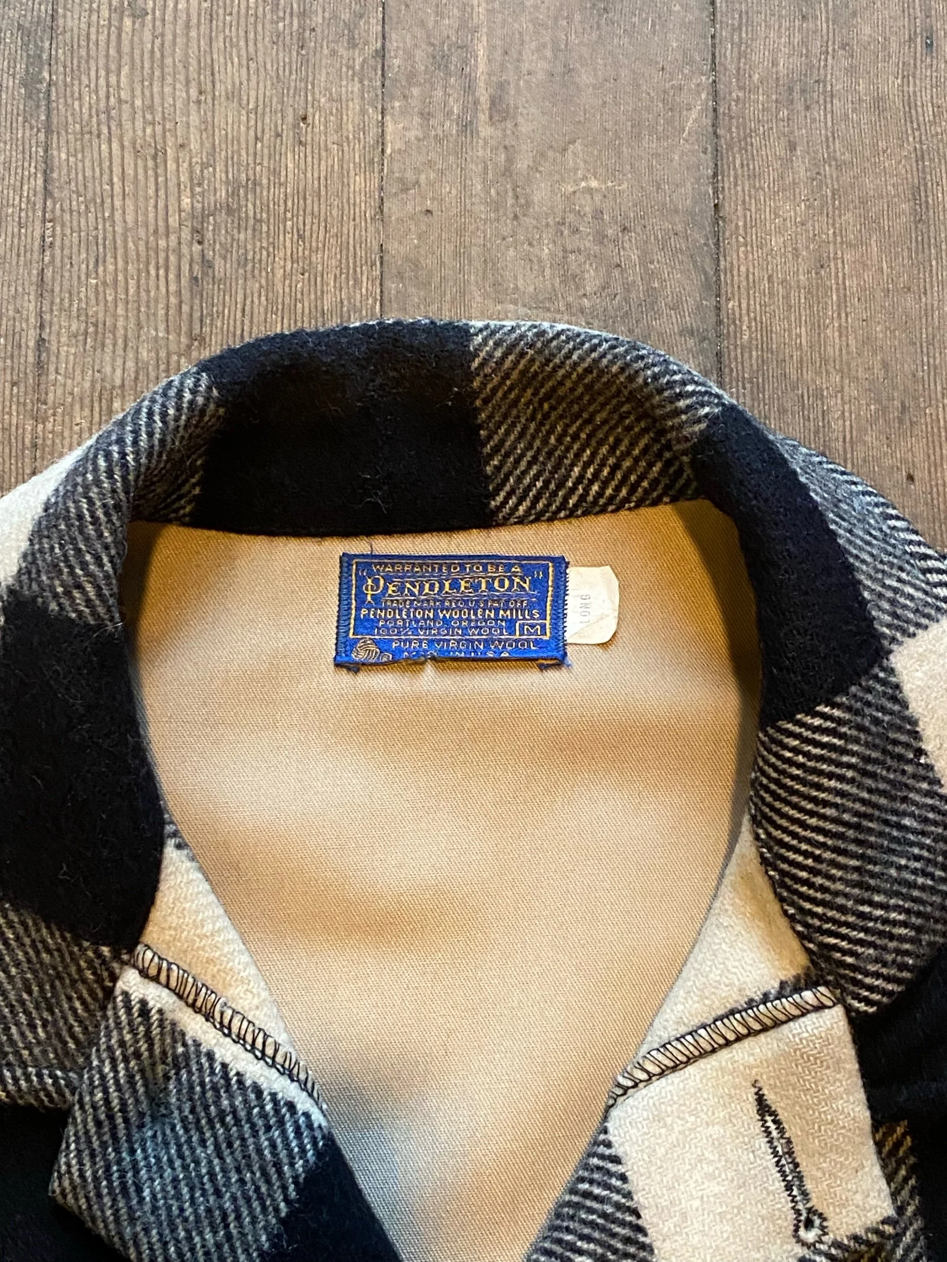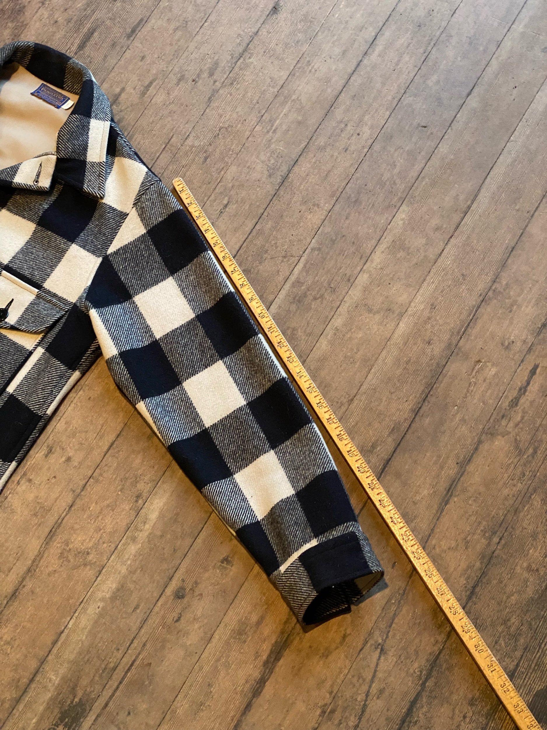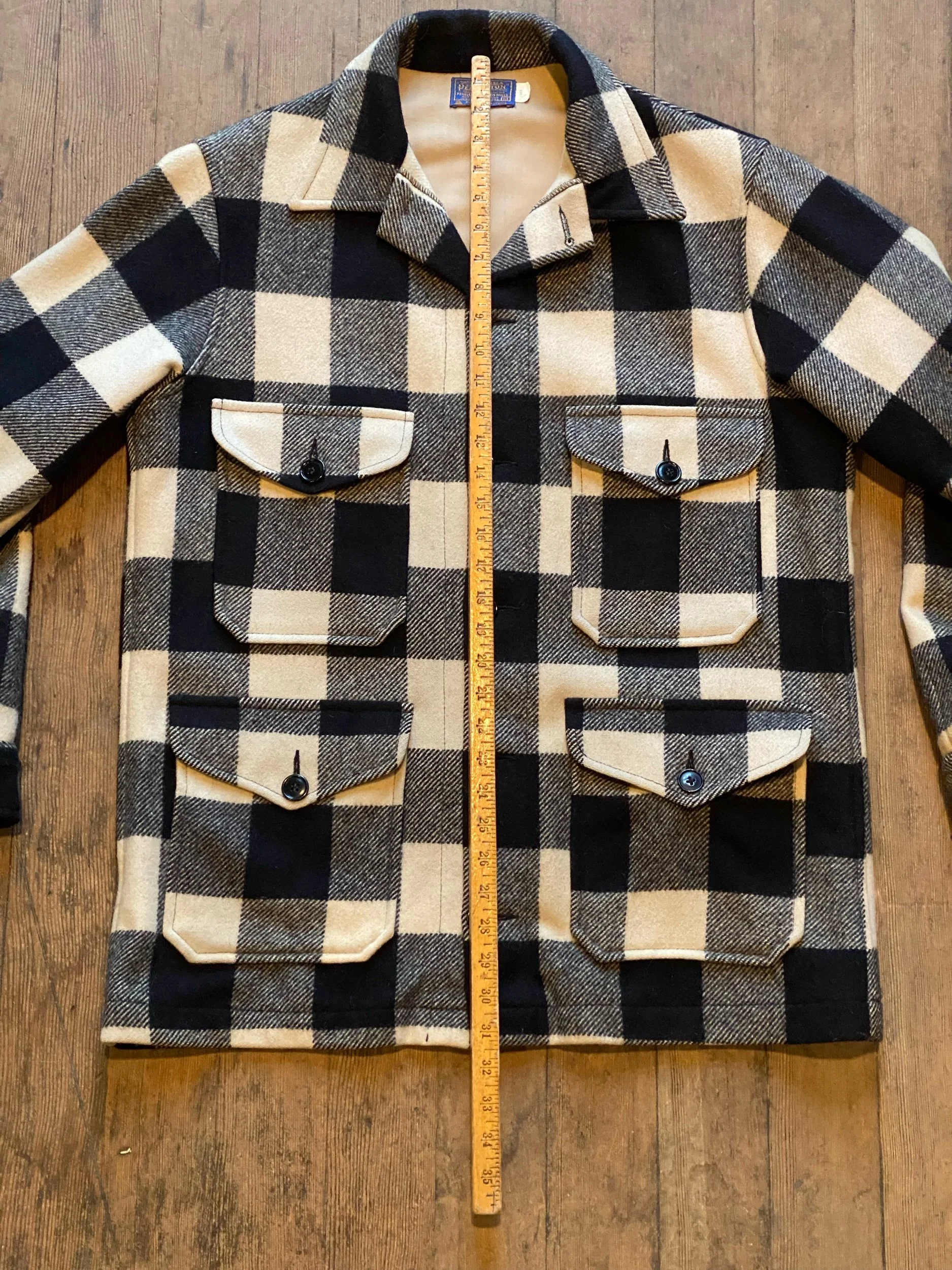Vintage Pendleton Black White Plaid Heavy Cruiser Mackinaw Jacket