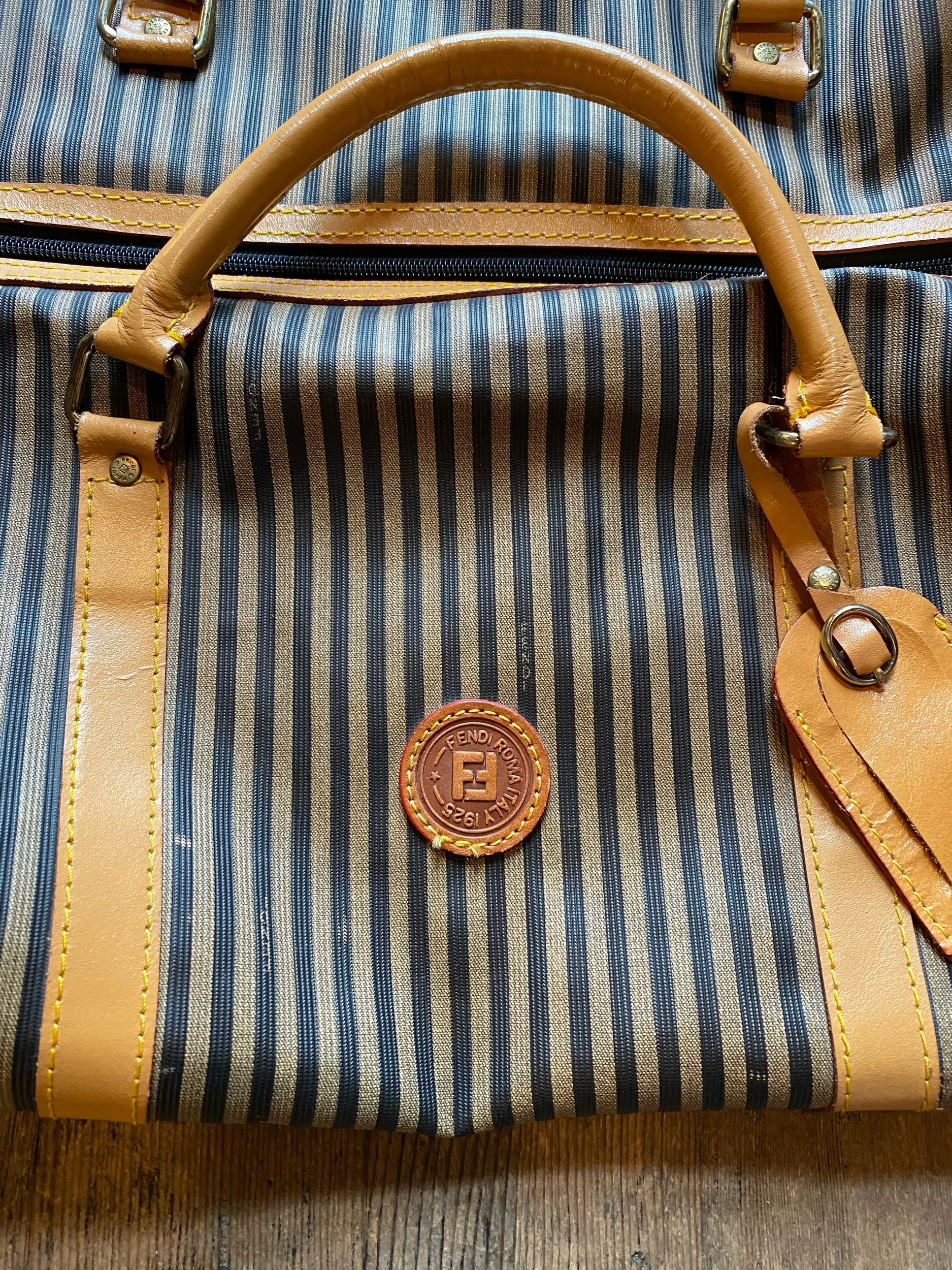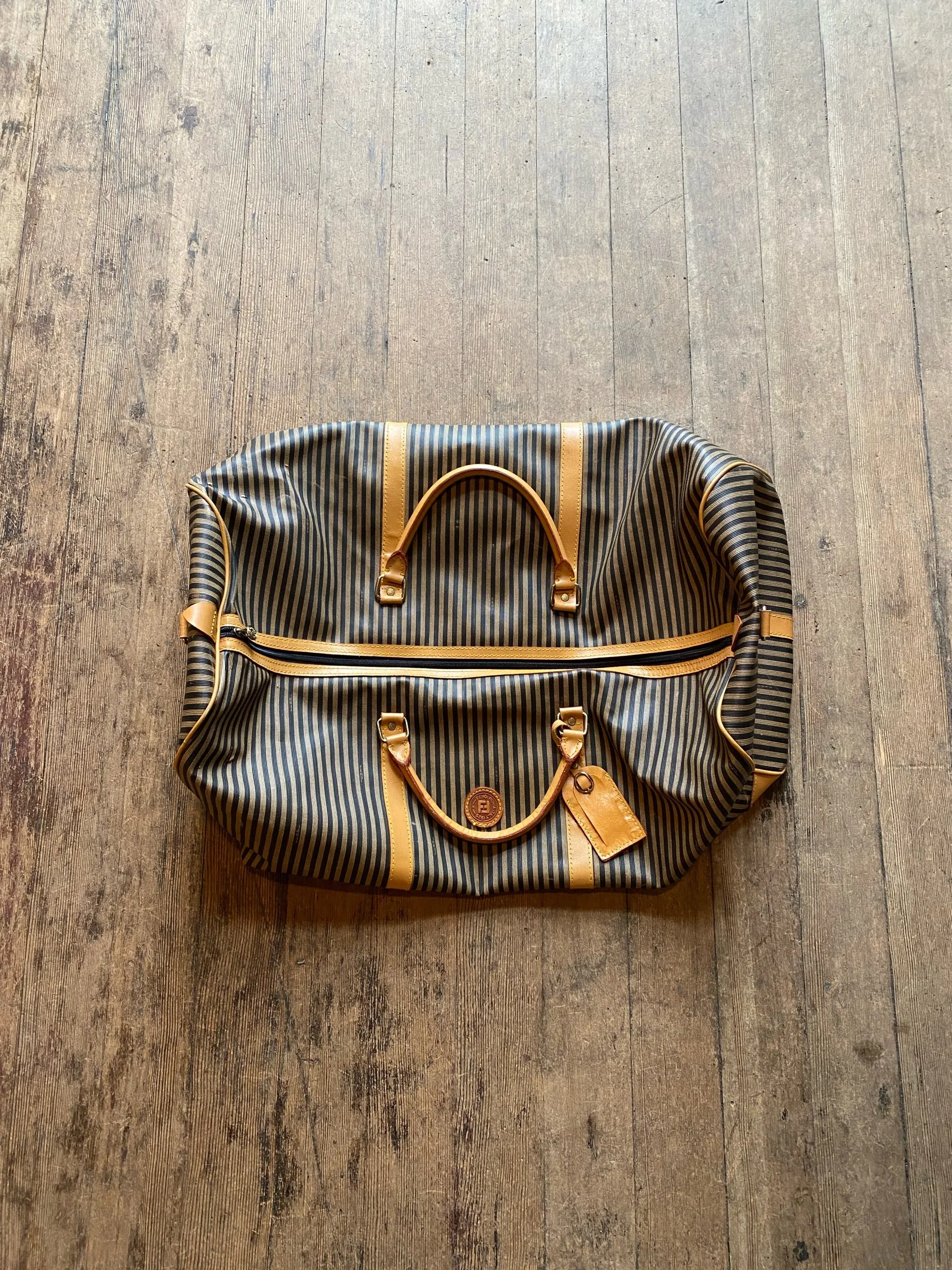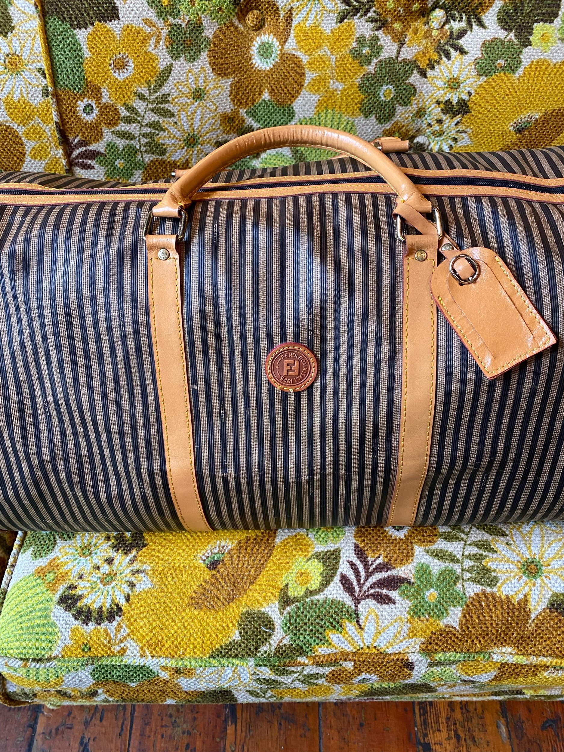 Vintage Fendi Large Duffel Luggage Bag Striped