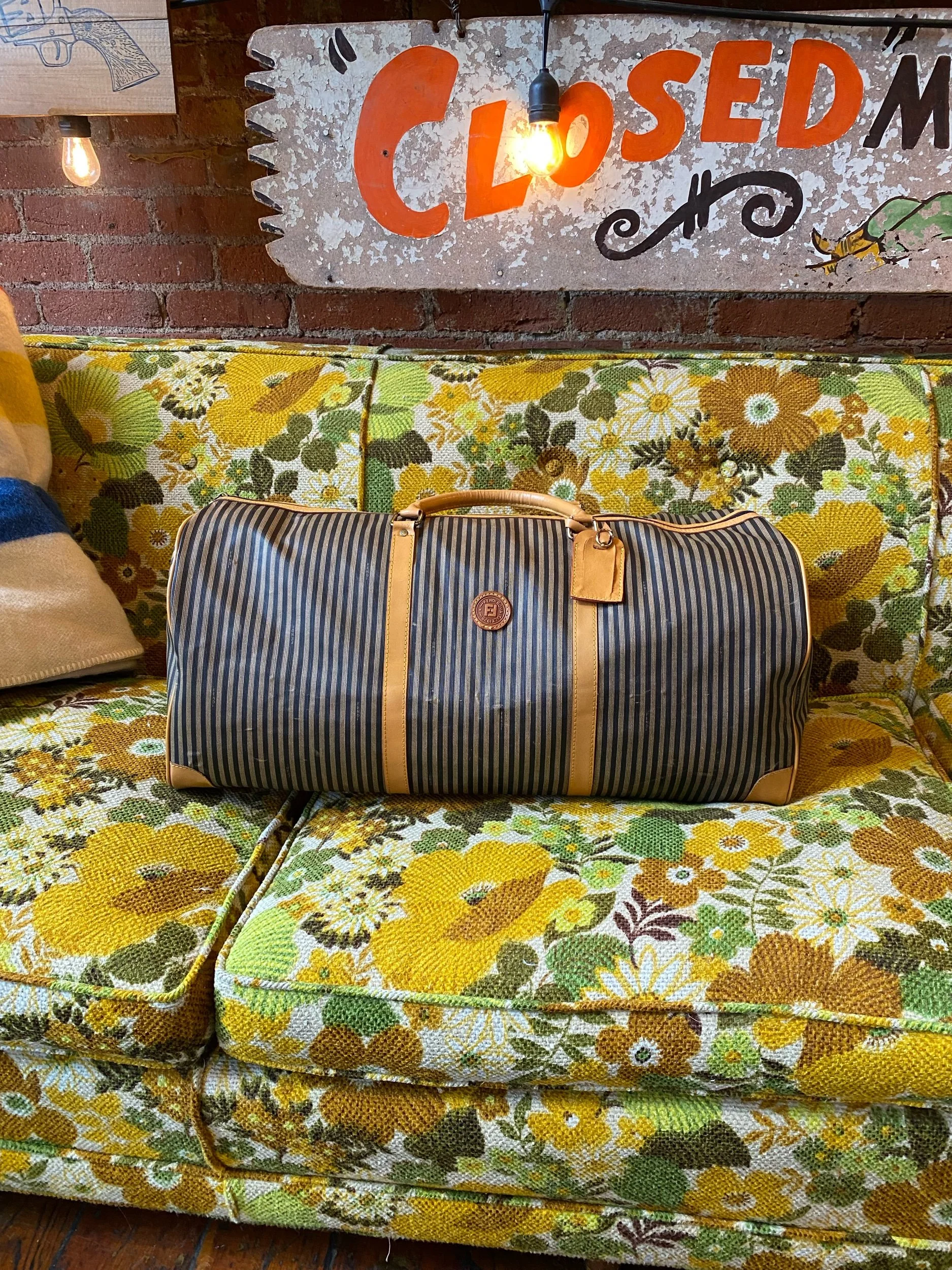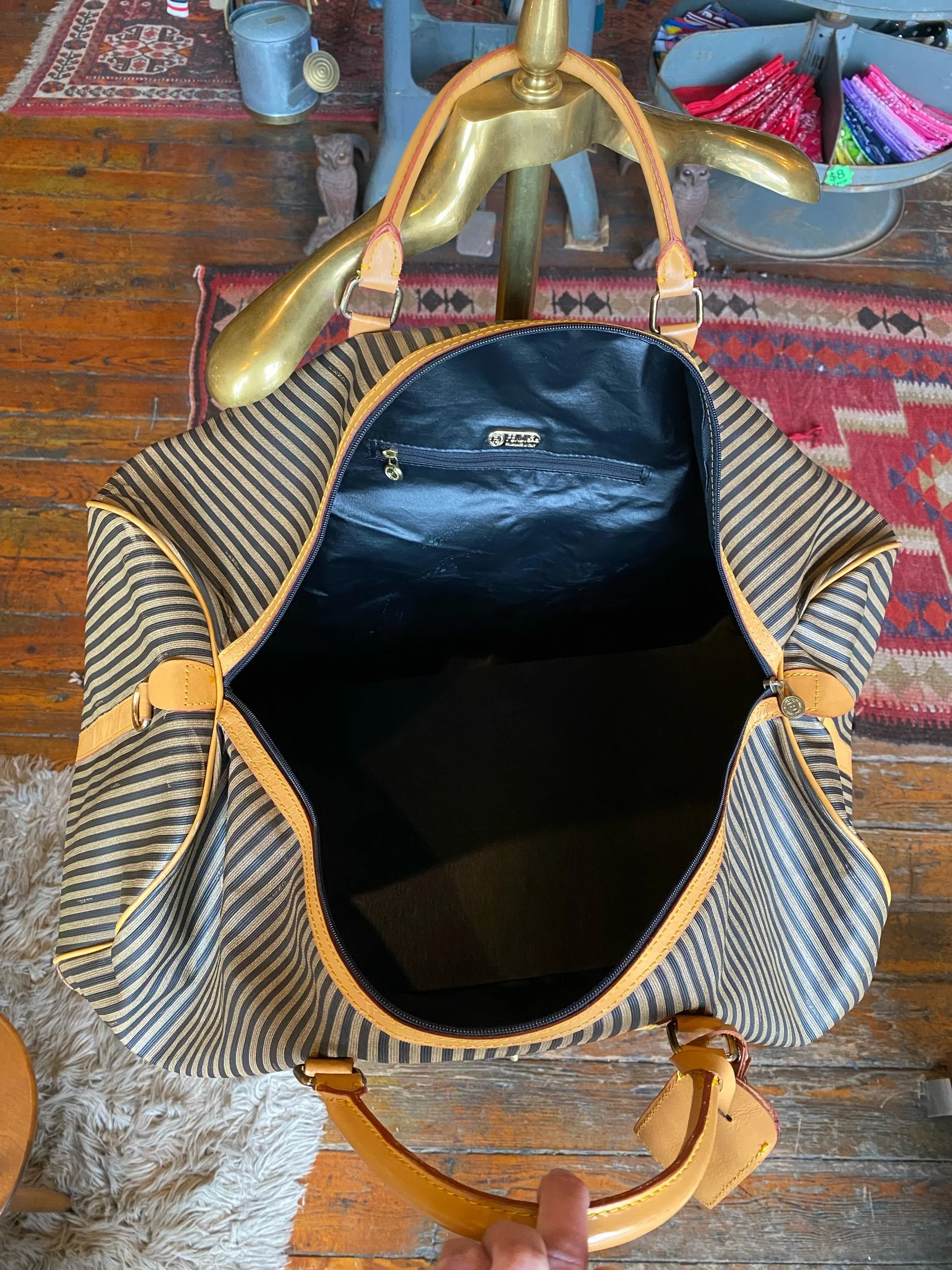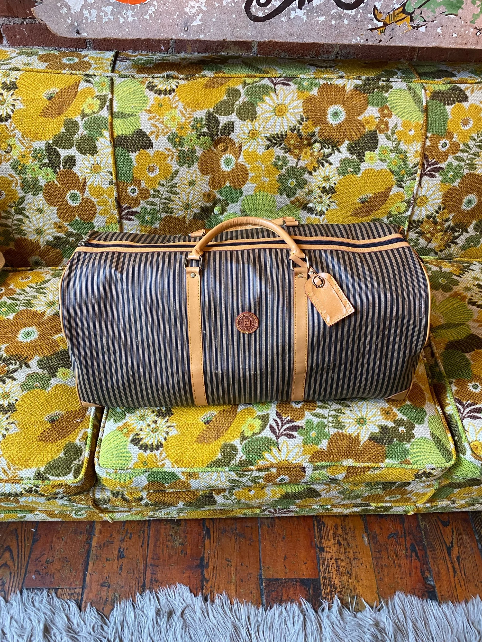 Vintage Fendi Large Duffel Luggage Bag Striped
