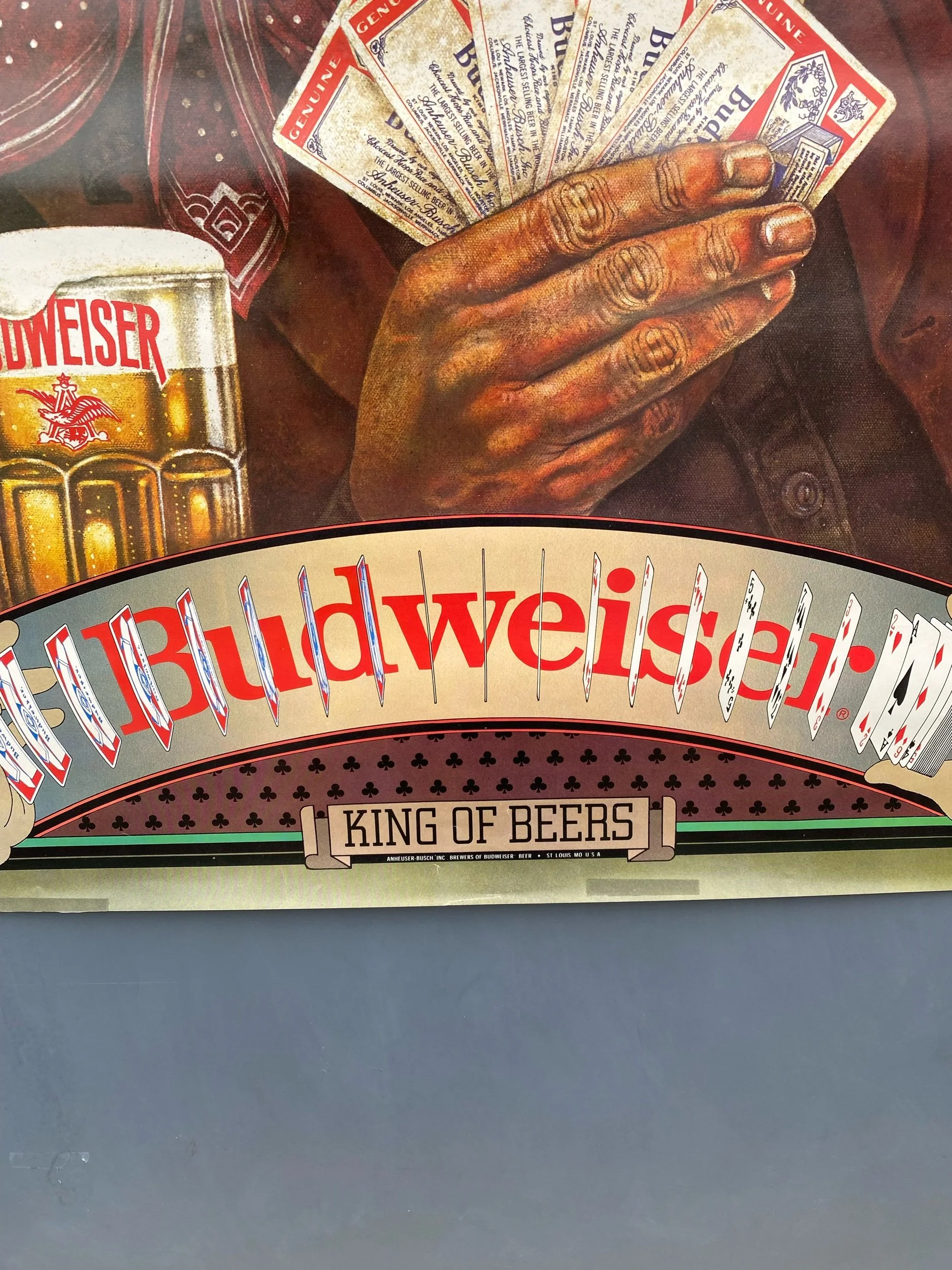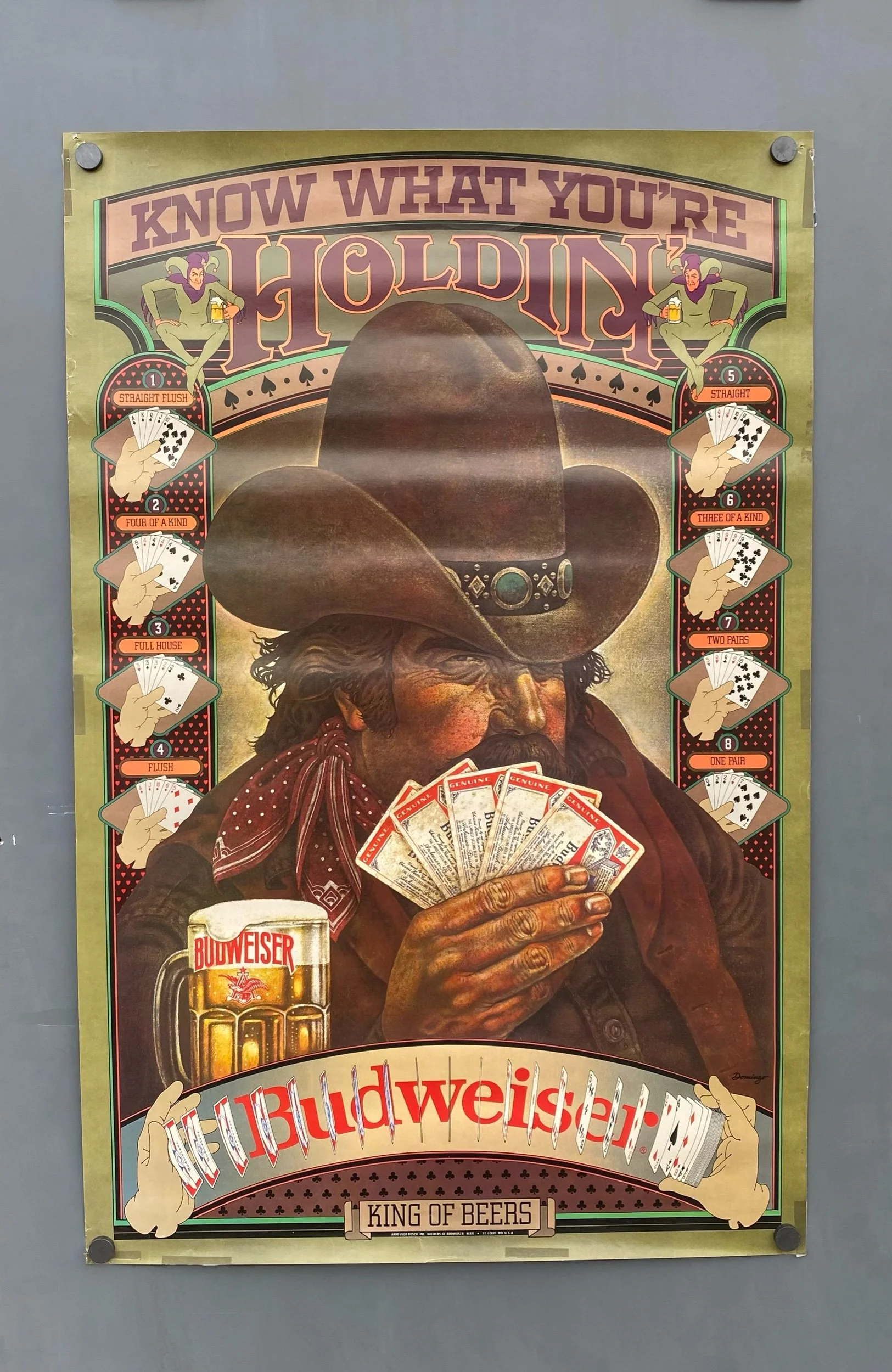 VTG Budweiser Beer Poster Ridin High Busting Sky Cowboy Rodeo 80s Advertising