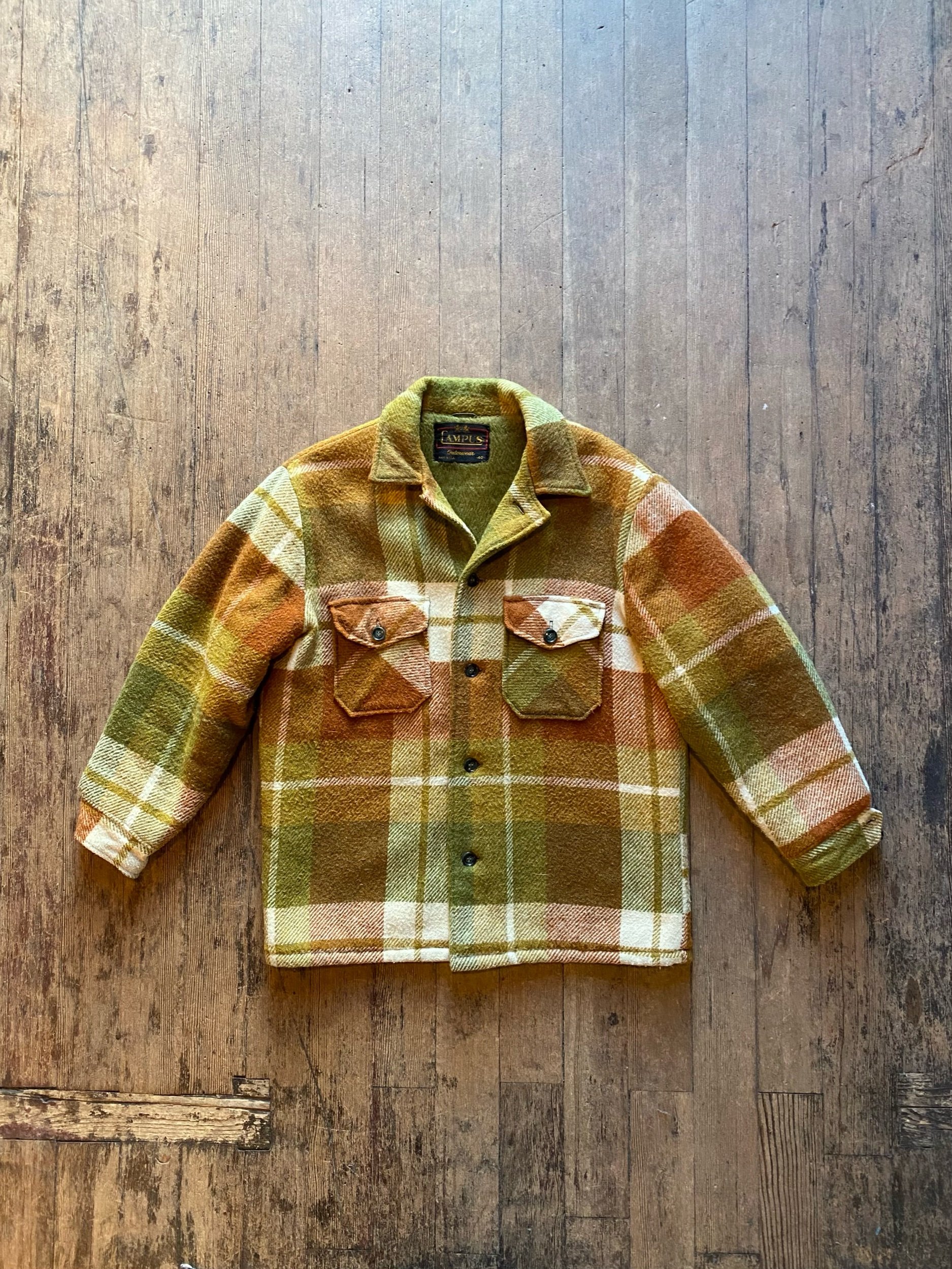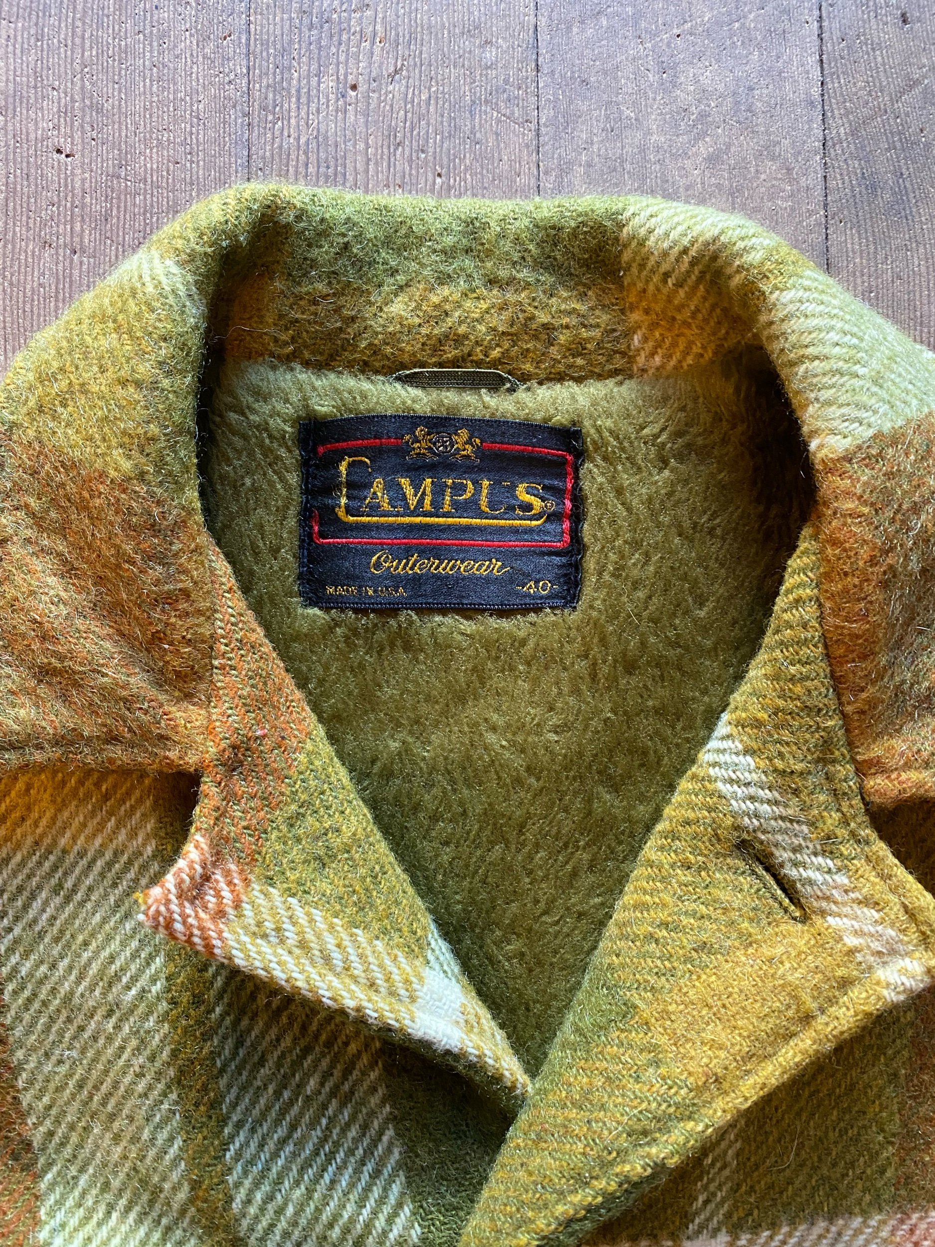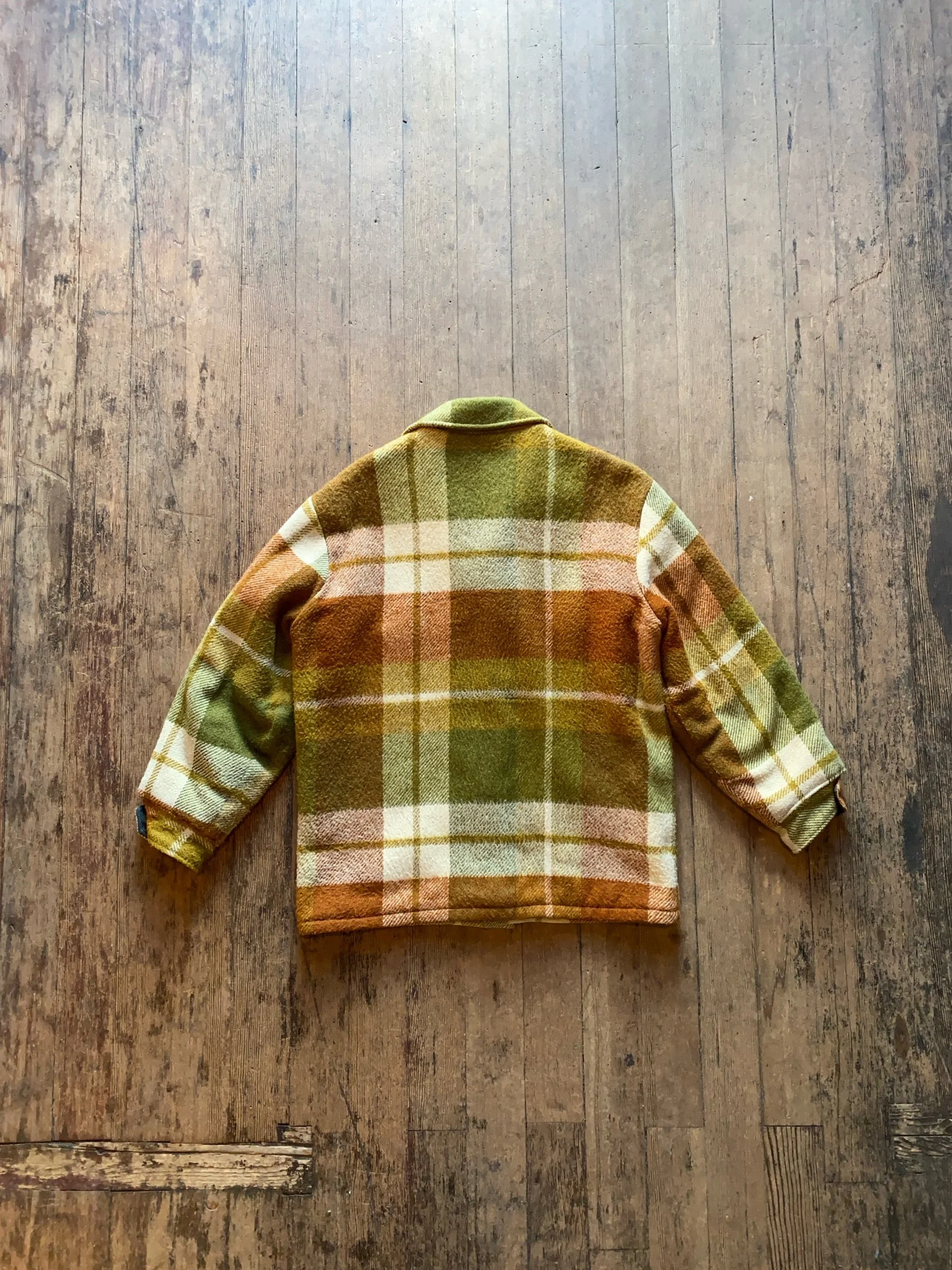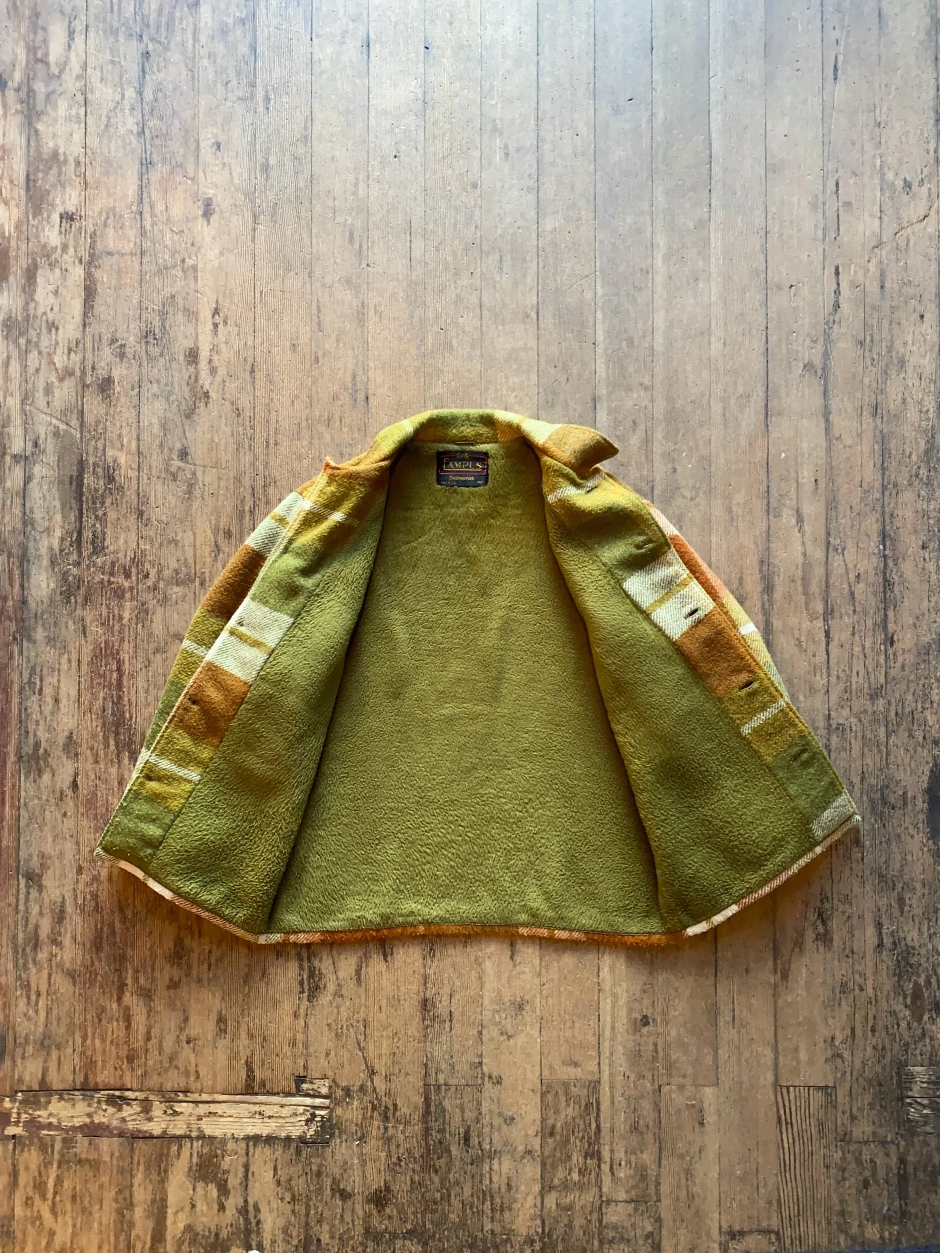 Vintage 60s Campus Green Brown Plaid Wool Jacket