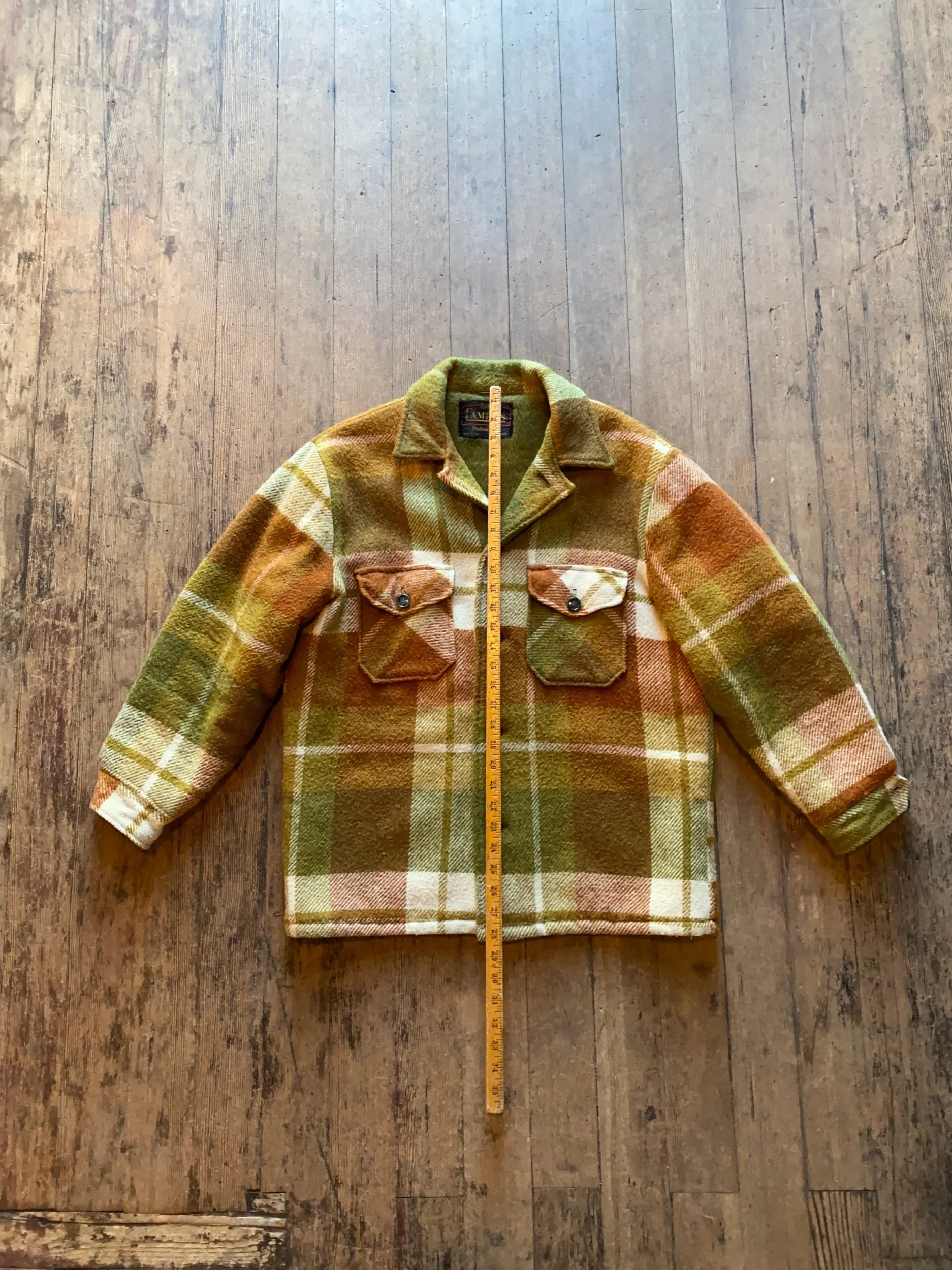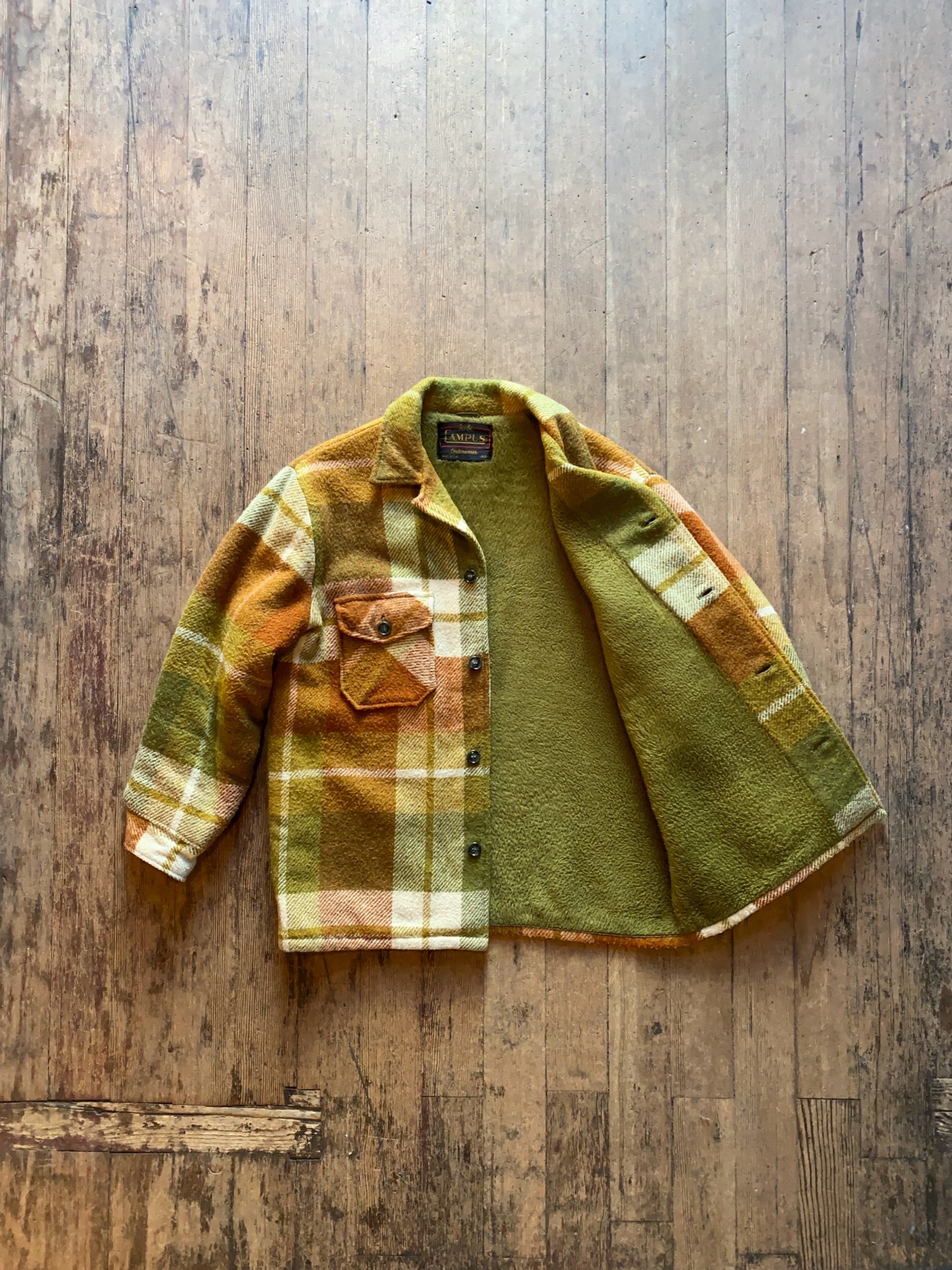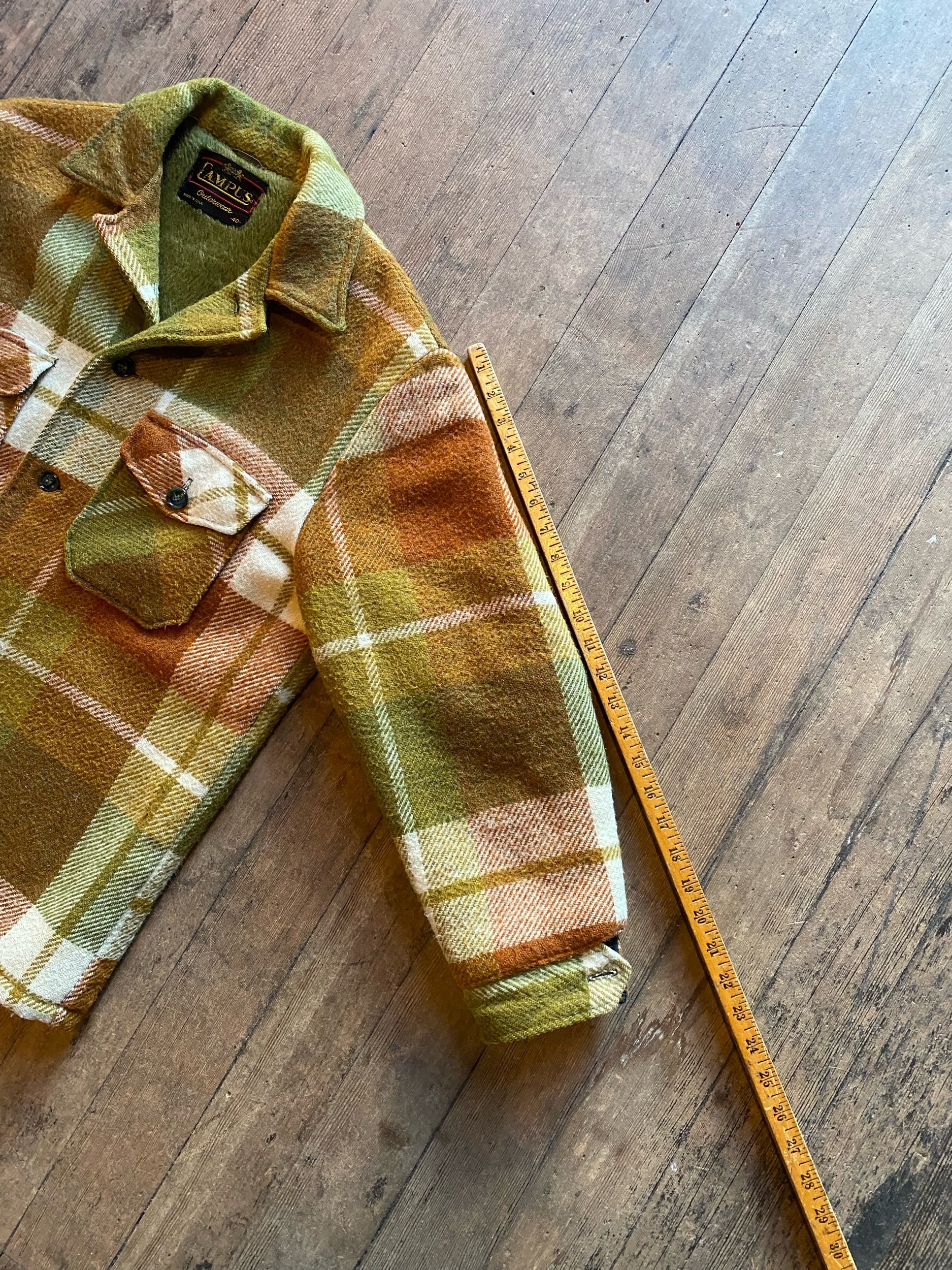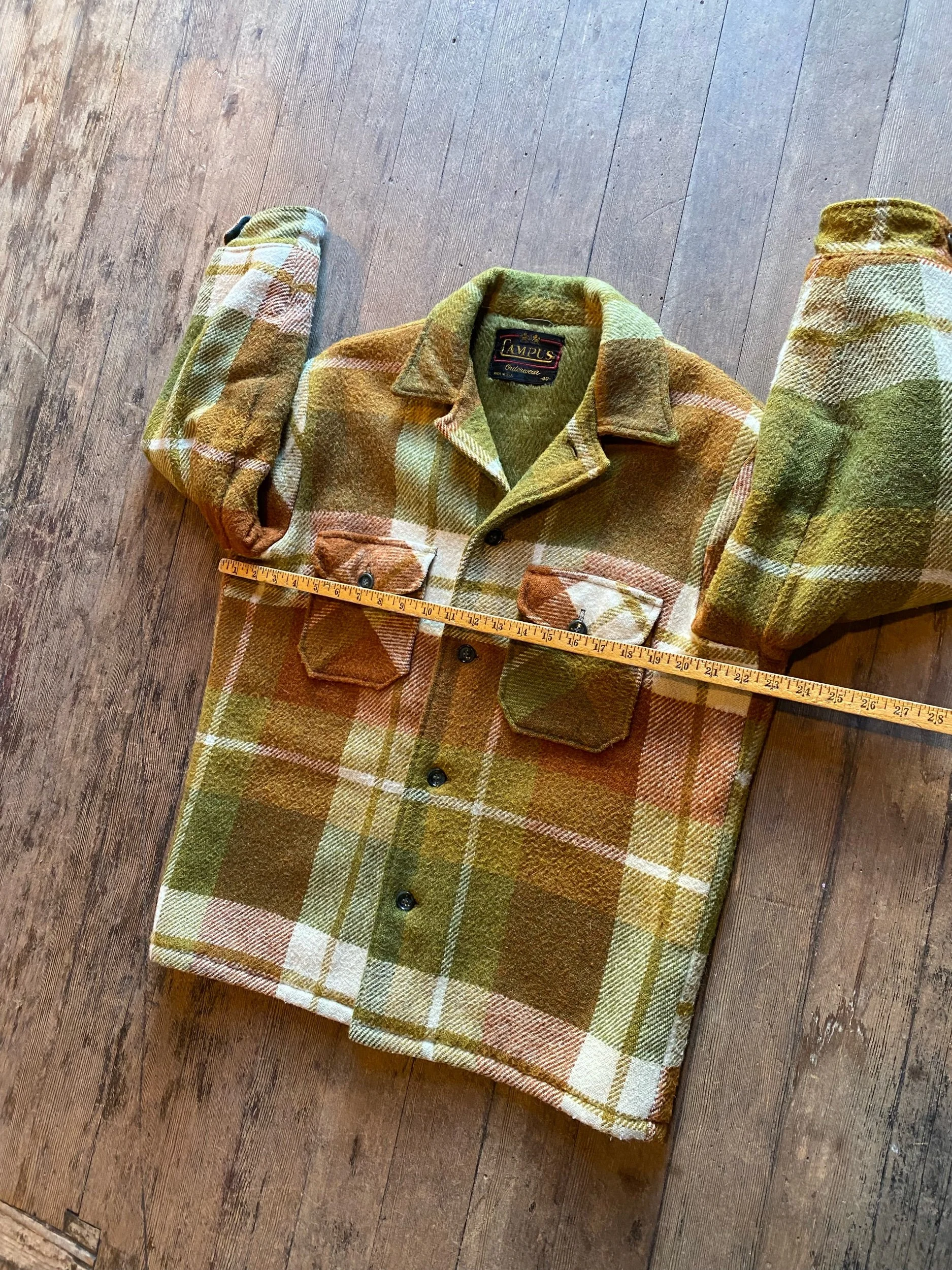 Vintage 60s Campus Green Brown Plaid Wool Jacket