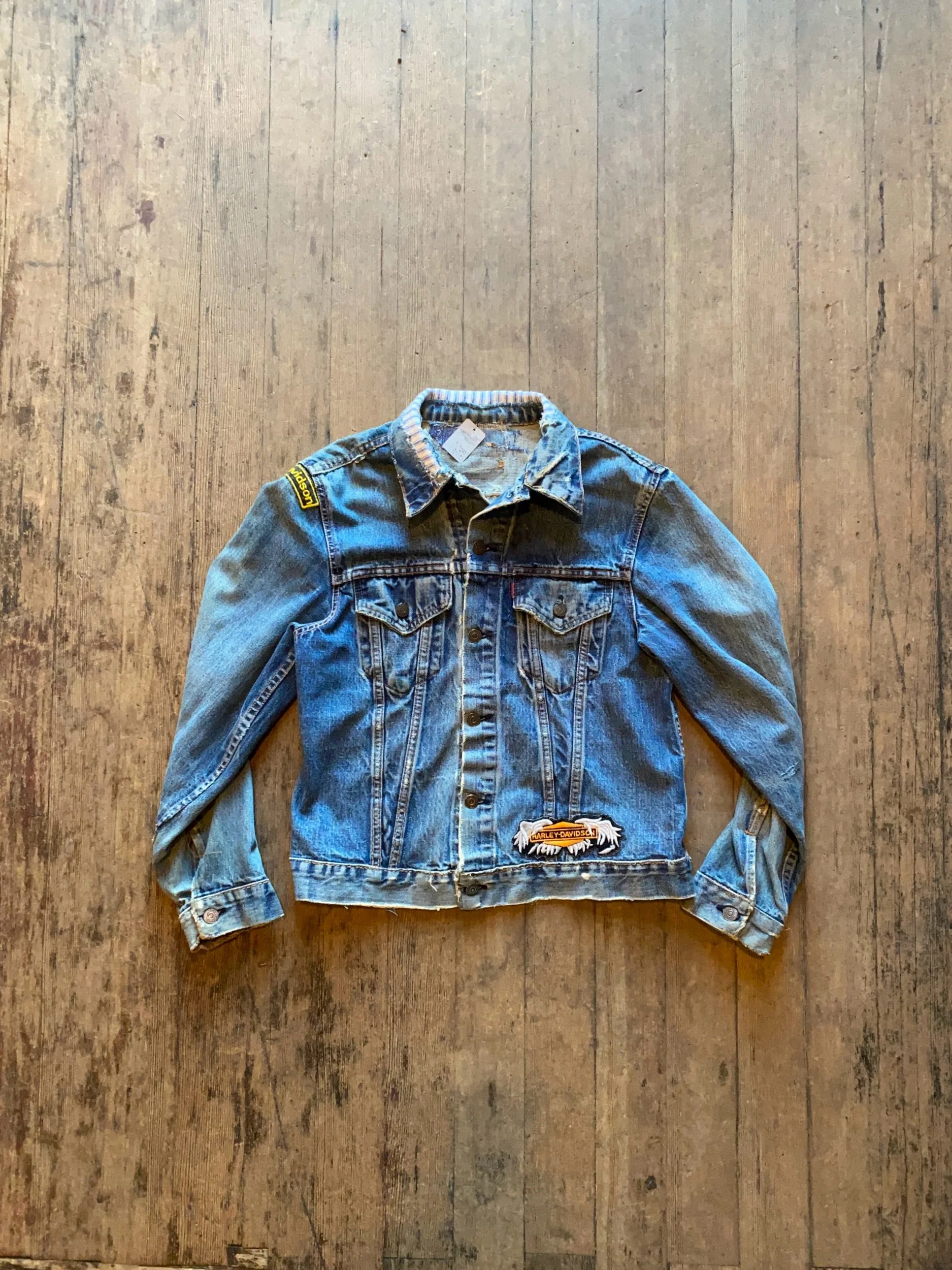 Vintage Levi’s Big E Type 3 Trucker Jacket Harley patches And amazing repairs