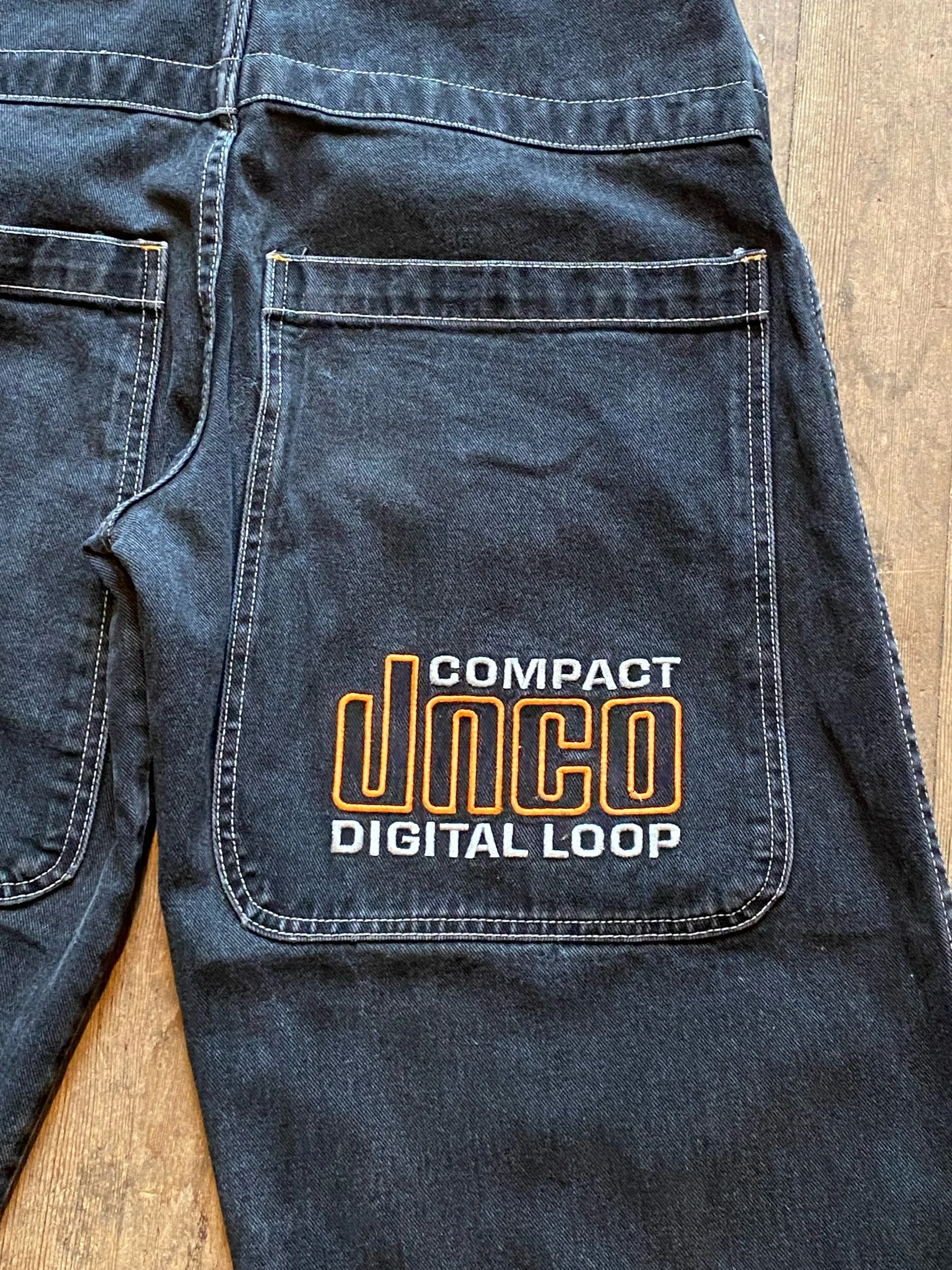 VTG JNCO DIGITAL LOOP COMPACT DISCMAN BLACK 90s USA 29x29.5 Jeans RARE OG